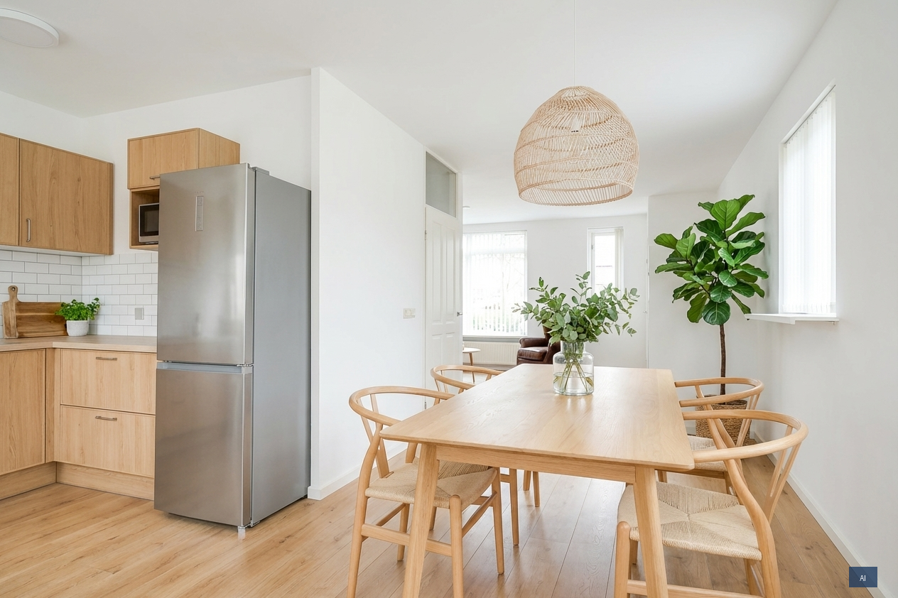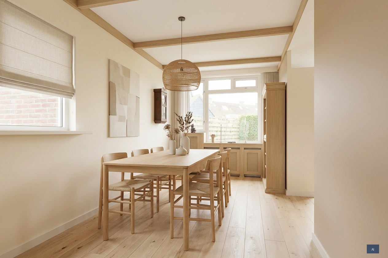 Enkele AI-voorbeelden laten subtiel zien hoe deze ruimte ingericht kan worden, zodat je een idee krijgt van de mogelijkheden.