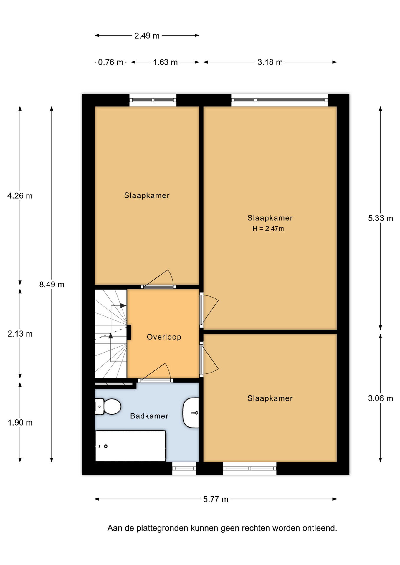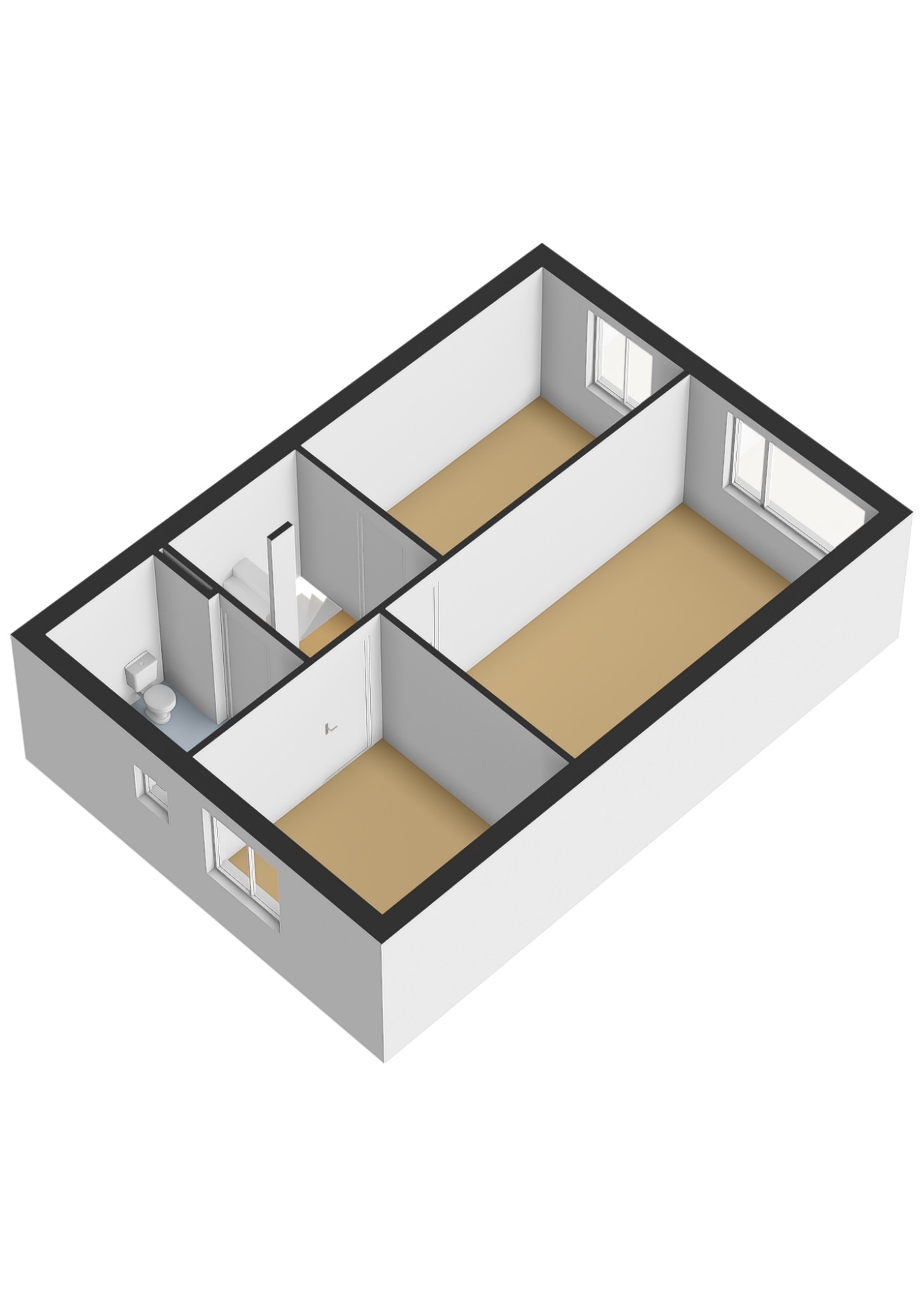 Via de gang met daarin het toilet en de meterkast, ga je via de trap naar de eerste verdieping, waar je drie ruime slaapkamers en een badkamer vindt. Met nog een vaste trap naar de tweede verdieping kom je op de enorm ruime zolder. hier kun je makkelijk nog twee ruime slaapkamers en een extra zolder maken.