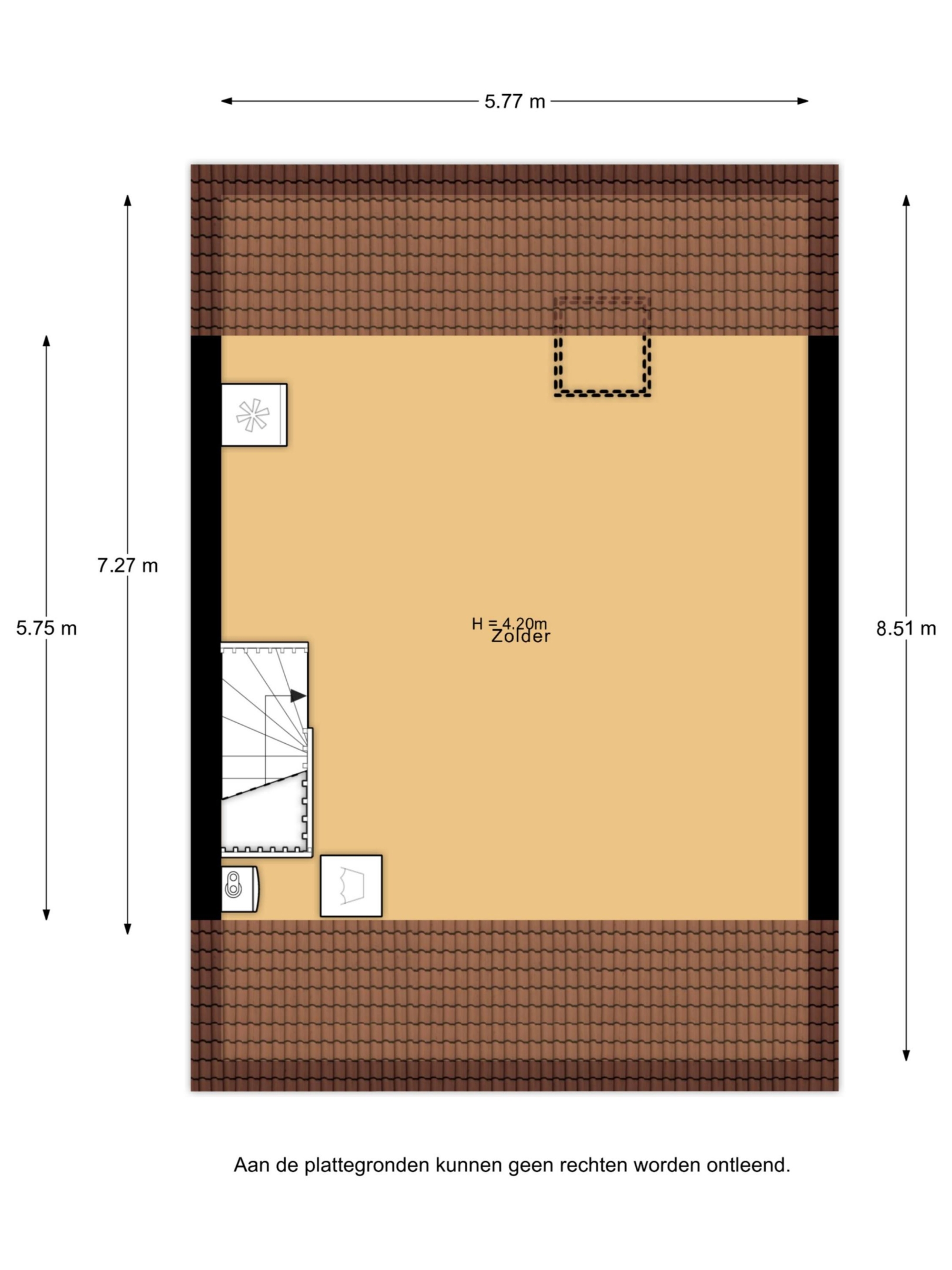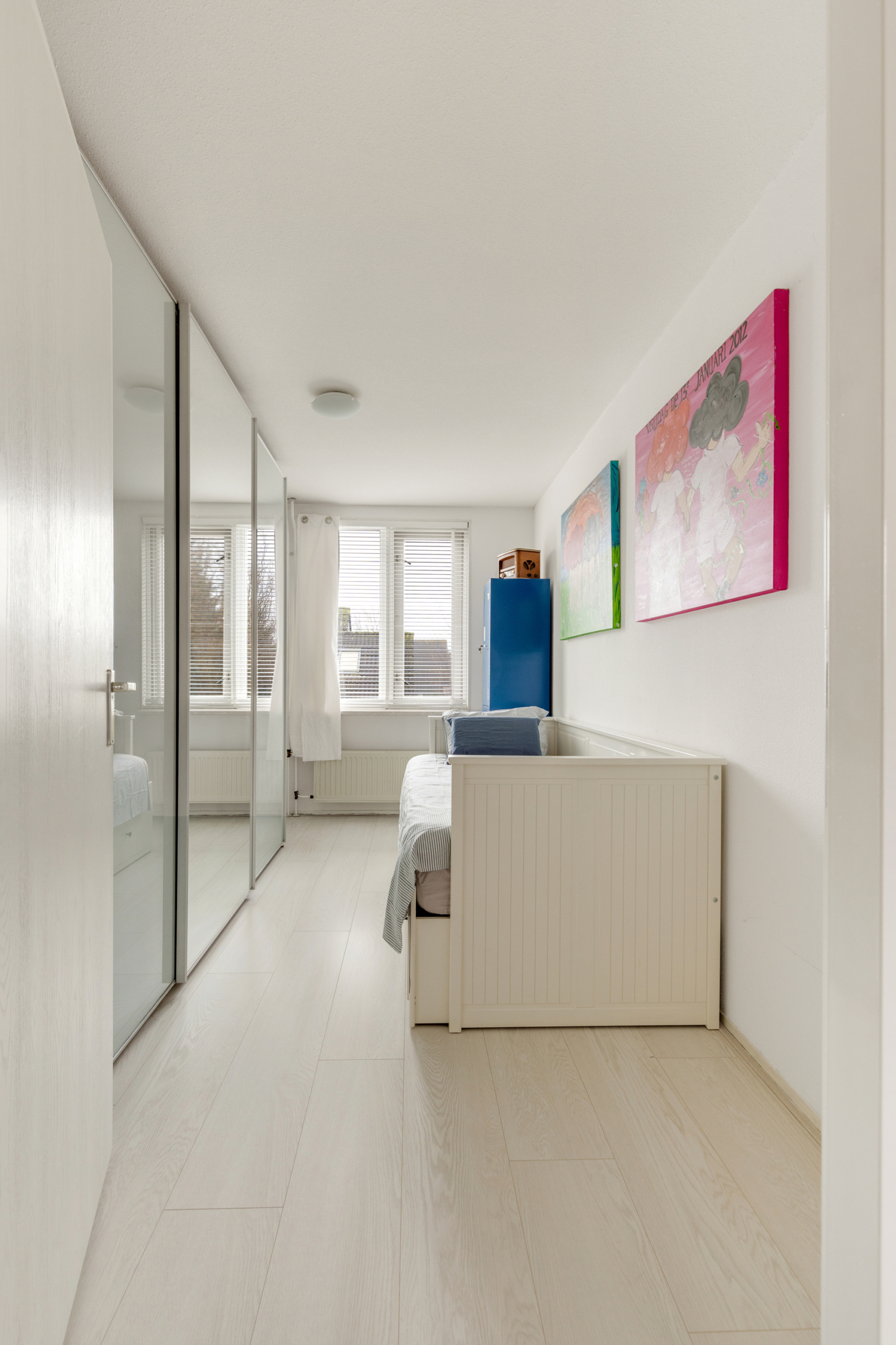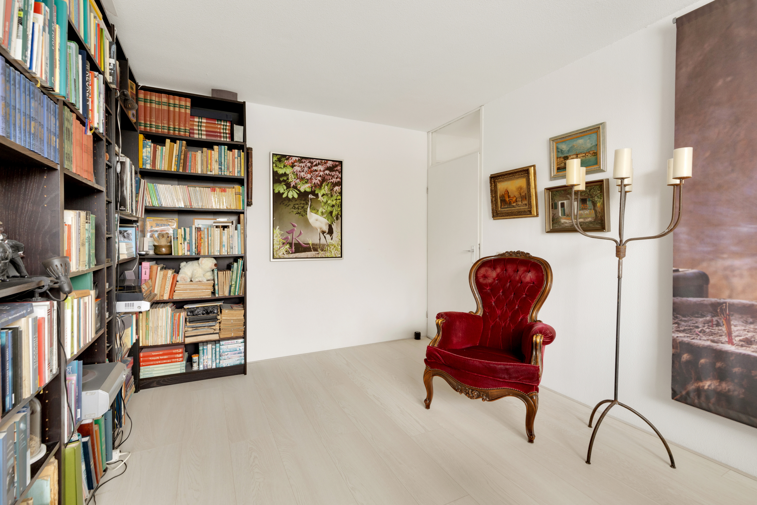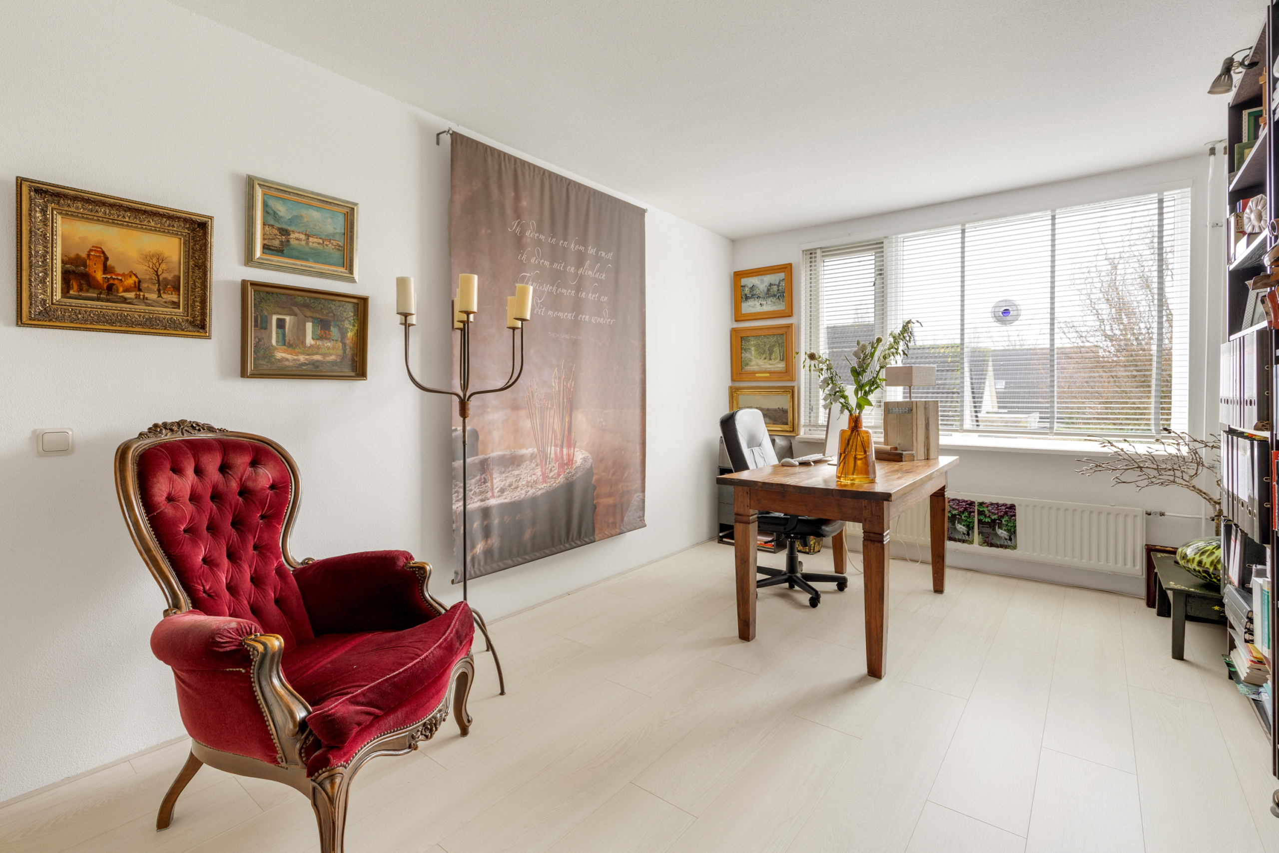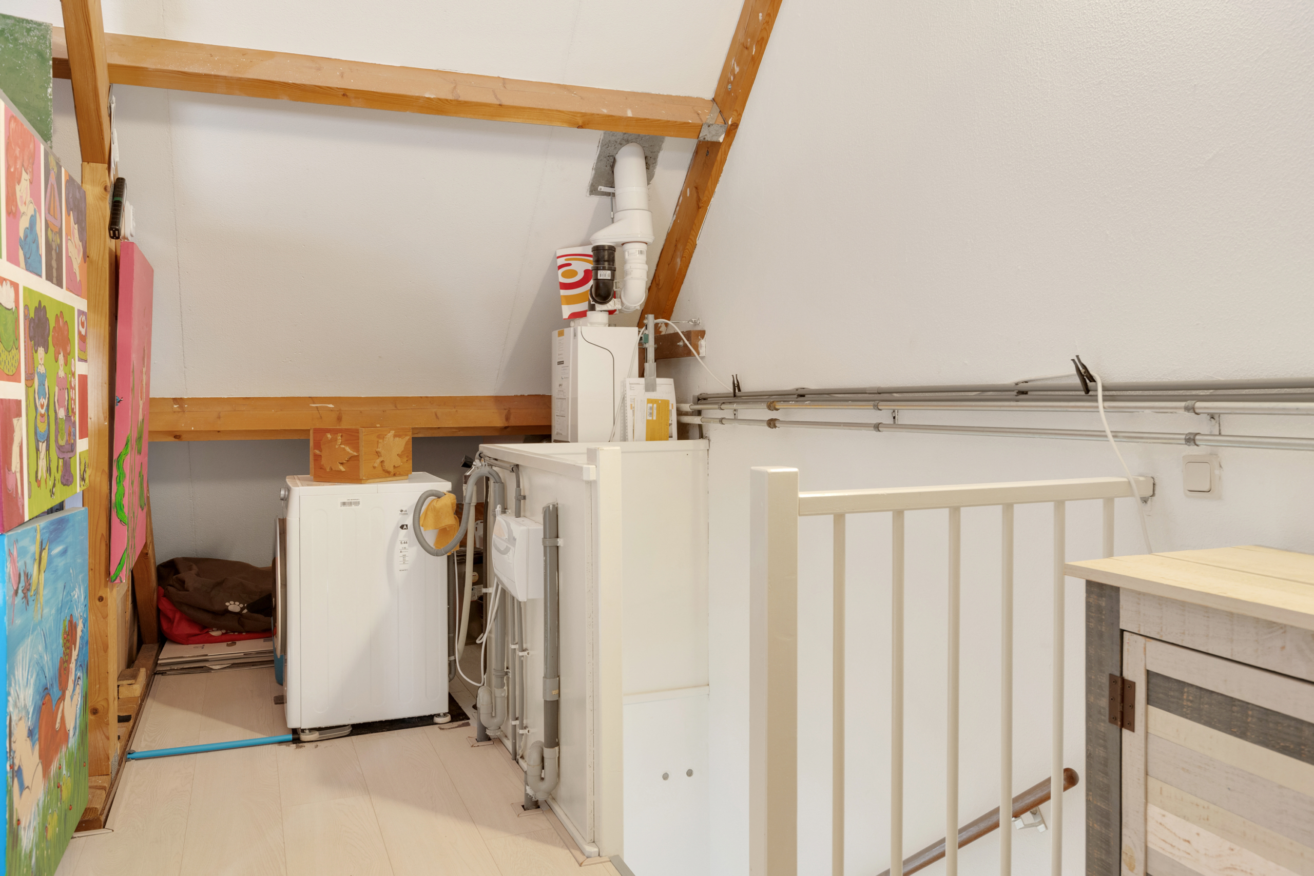 Tweede verdieping – grote open zolderruimte die nu in gebruik is als atelier, maar hier zijn met gemak twee ruime slaapkamers van te maken. Tevens bevindt zich hier de aansluiting voor de wasmachine en is er voldoende ruimte voor opslag. Ook op deze verdieping is e lichte laminaatvloer terug te vinden.