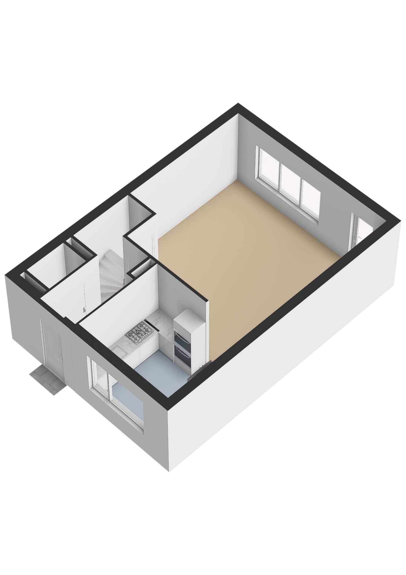 In de woning zelf heb je beneden een zeer ruime woonkamer over de volledige breedte van het huis met daarbij aan de voorzijde een half open keuken. Ook hier weer grote ramen die voor veel licht zorgen.