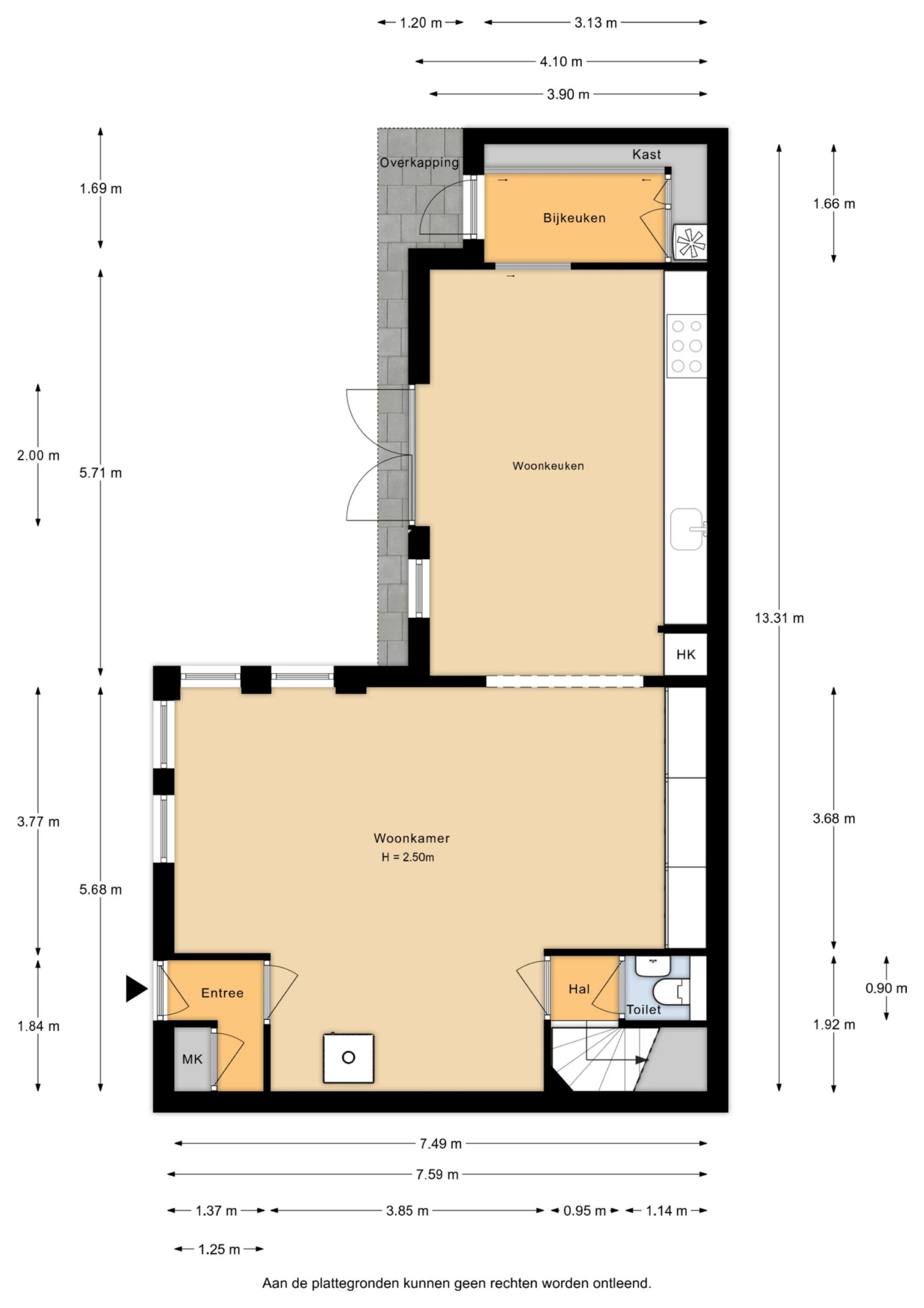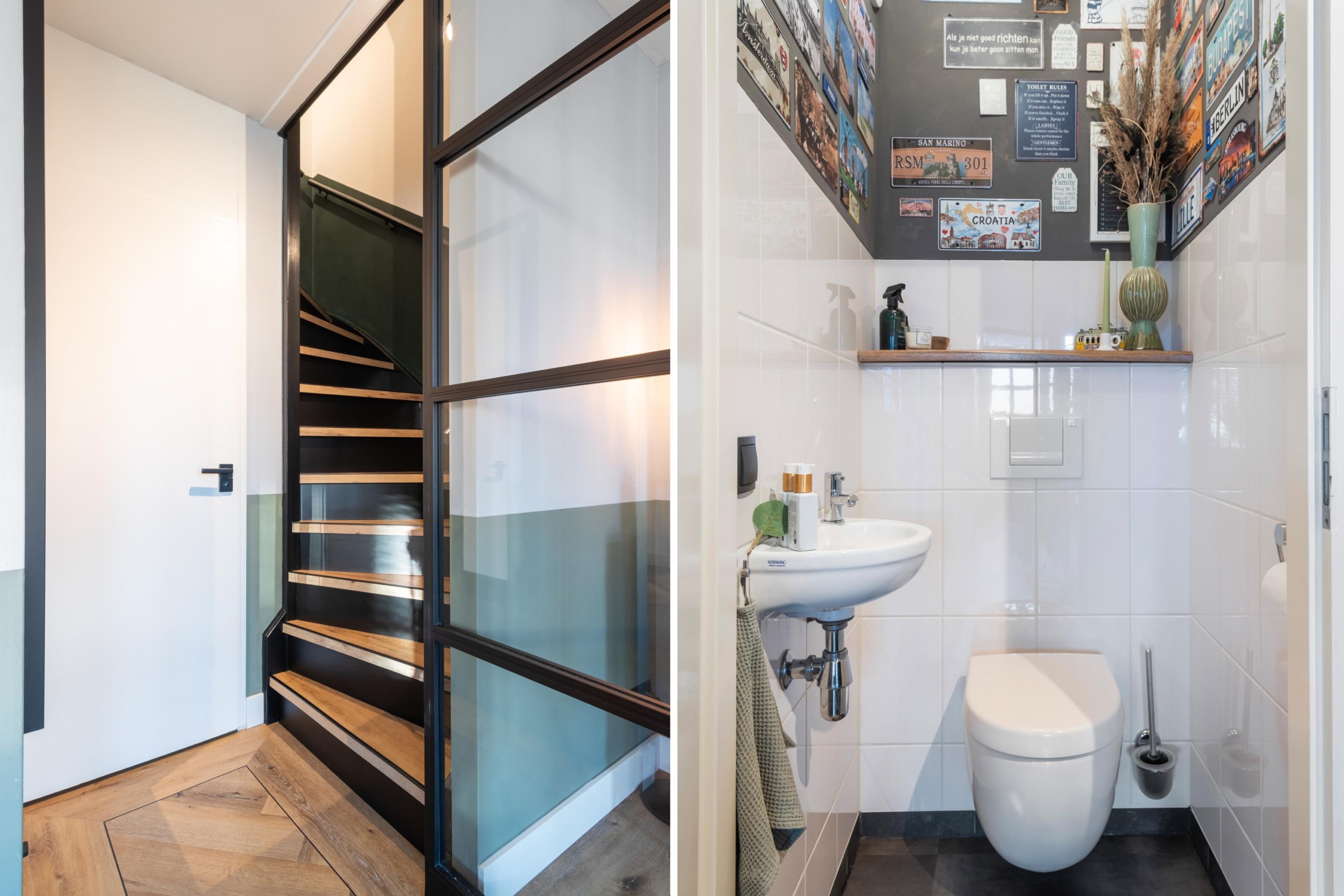 In de woning zelf teruggekomen ga je vanuit een tweede halletje naar het toilet en de trap naar de eerste verdieping.