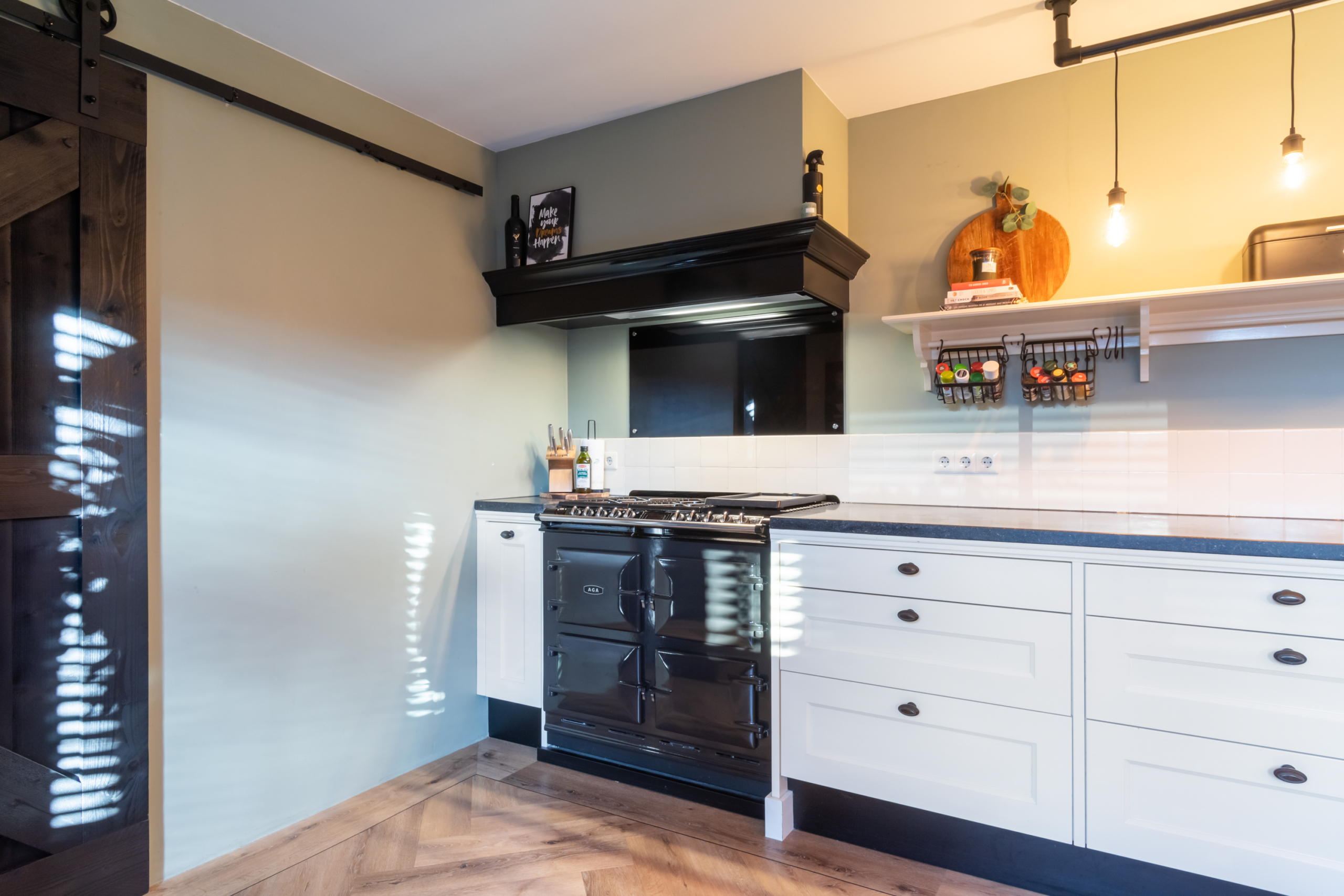 De keuken is van de makers van Lodder Keukens, wat staat voor luxe en kwaliteit en is op maat gemaakt. Voorzien van een luxe modern/landelijke aanrechtblok met een origineel AGA fornuis met maar liefst 4 ovens! Aanrecht is van natuursteen met een granito gootsteen. Verder is de keuken voorzien van moderne inbouwapparatuur zoals koel- vrieskast, vaatwasser en een mooi weggewerkte afzuigkap.