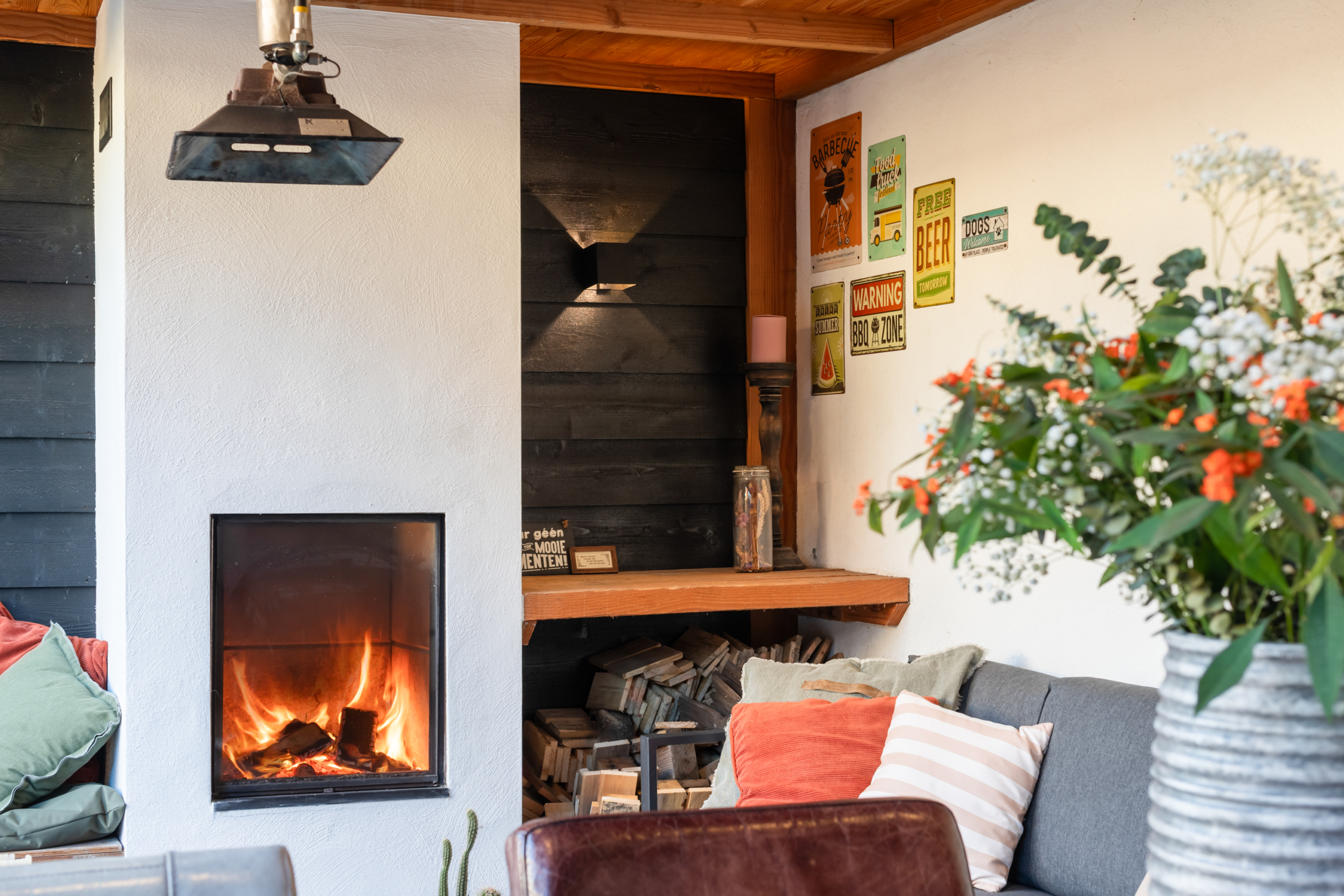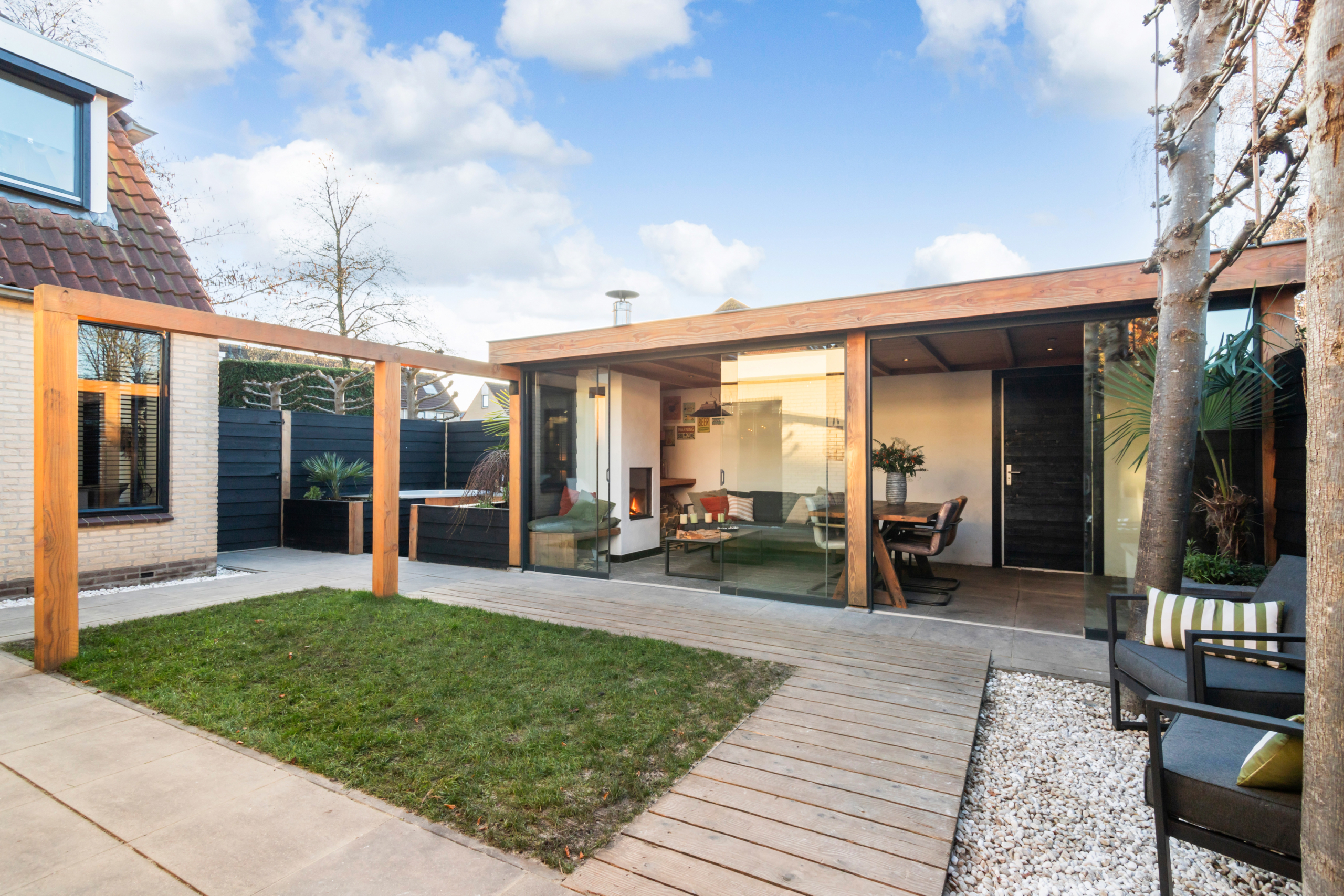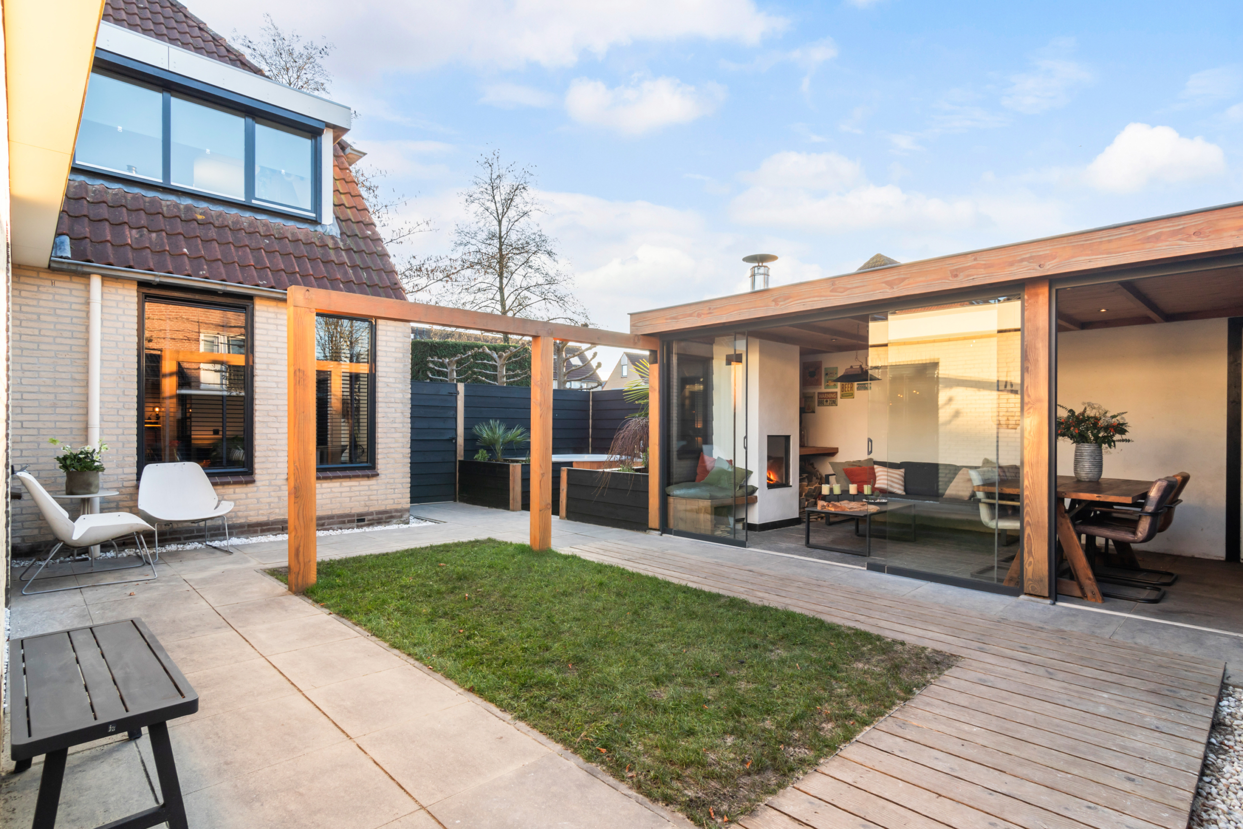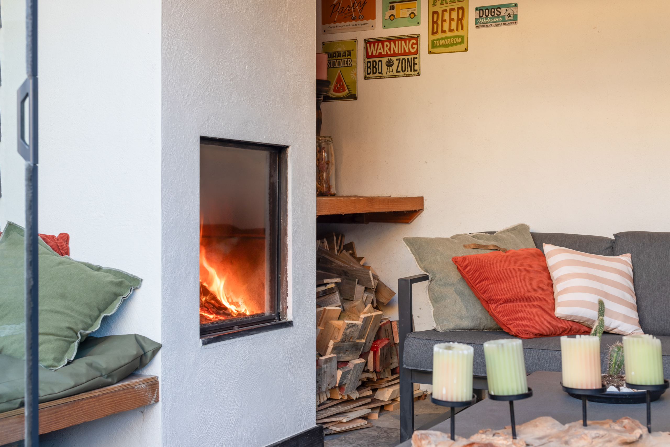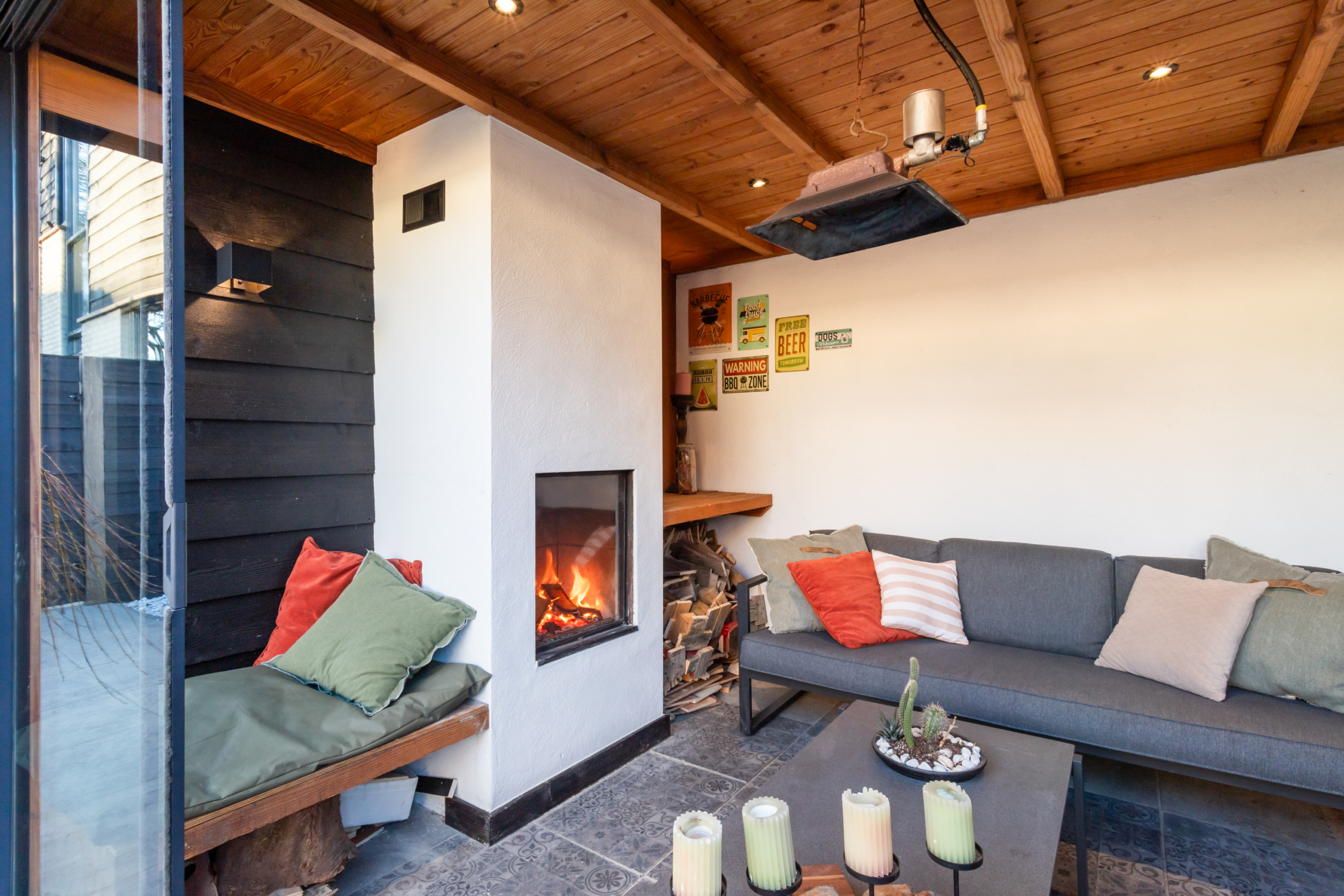 Met de tuinligging op het zuidwesten is het de hele dag heerlijk toeven in het zonnetje, maar ook aan de schaduwplekjes is gedacht doordat er een grote veranda aangebouwd is aan de garage. Hierin bevindt zich een glazen schuifwand en een open haard zodat je hier in alle jaargetijden heerlijk kunt recreëren. Om het luxe tuinleven helemaal compleet te maken is naast de veranda een houtgestookte hottub aanwezig!