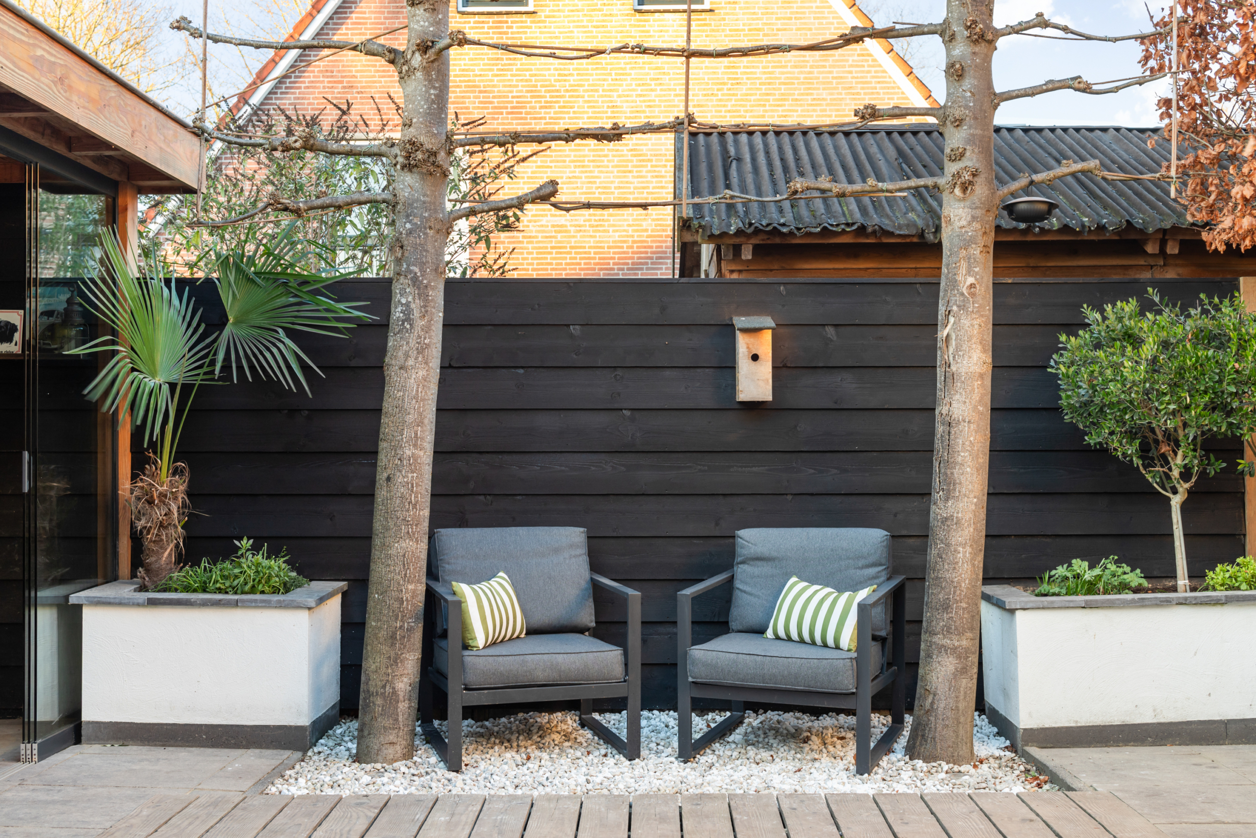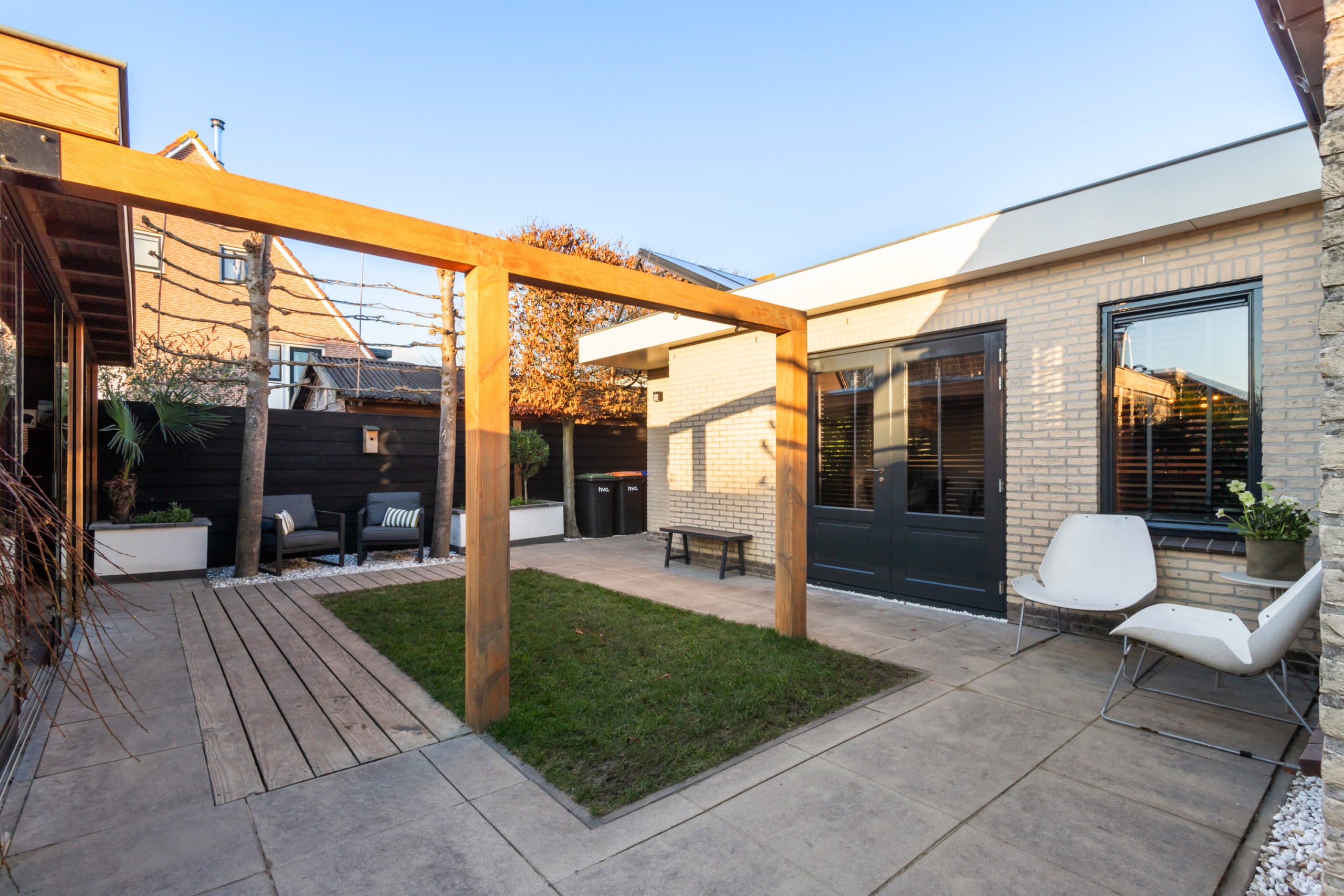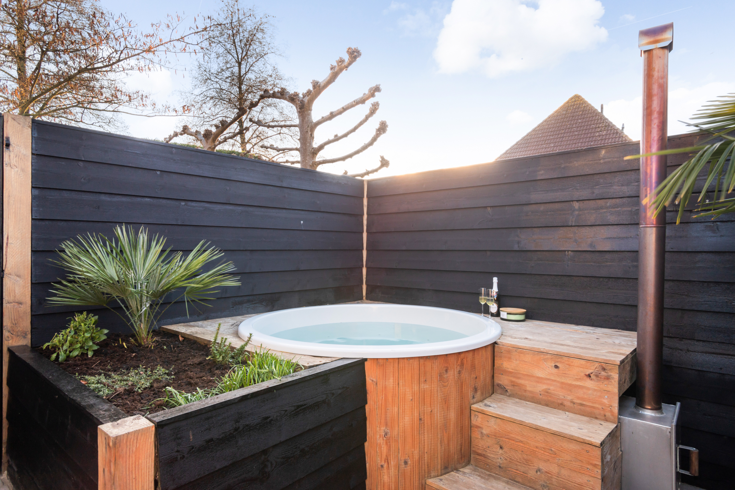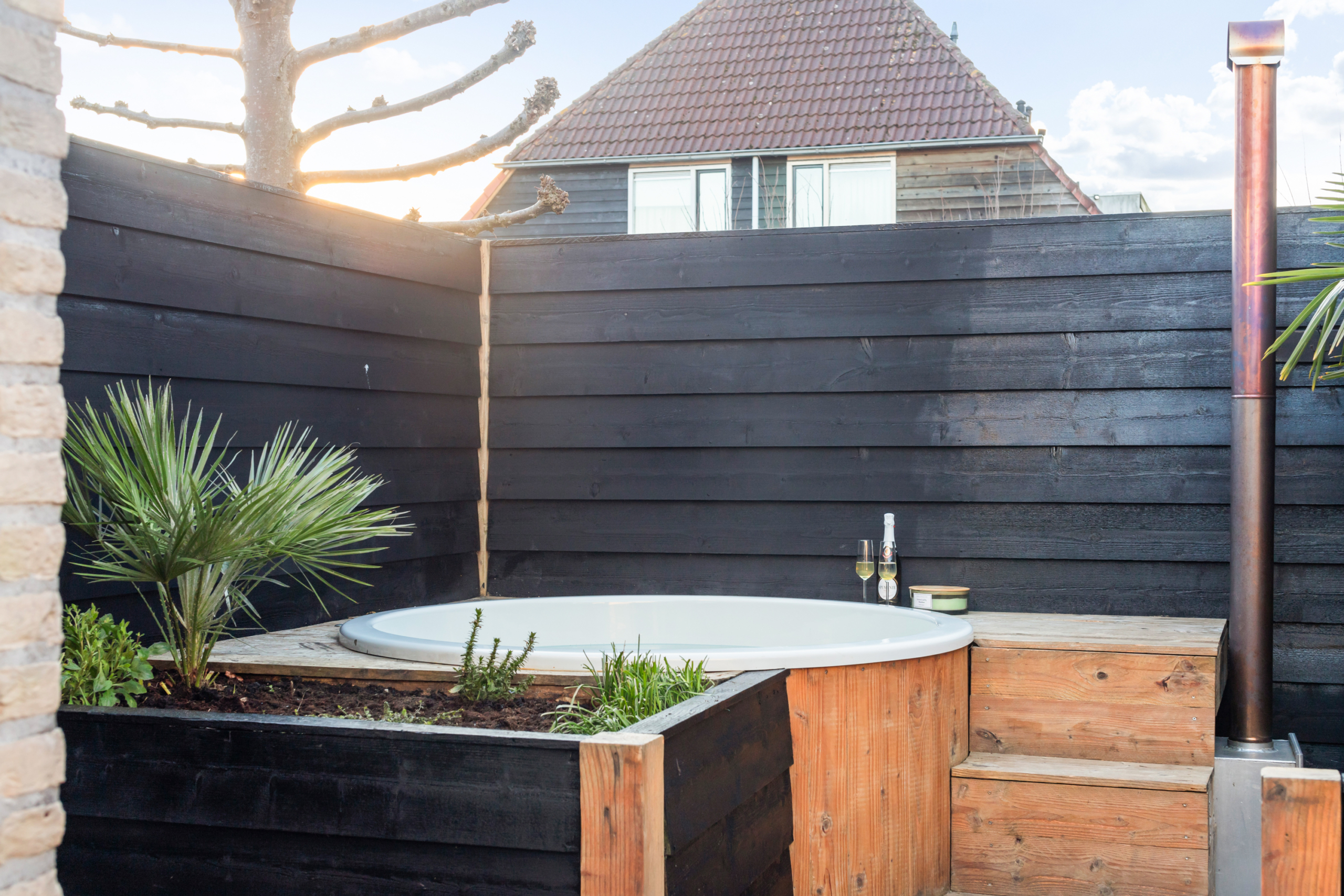 Met de tuinligging op het zuidwesten is het de hele dag heerlijk toeven in het zonnetje, maar ook aan de schaduwplekjes is gedacht doordat er een grote veranda aangebouwd is aan de garage. Hierin bevindt zich een glazen schuifwand en een open haard zodat je hier in alle jaargetijden heerlijk kunt recreëren. Om het luxe tuinleven helemaal compleet te maken is naast de veranda een houtgestookte hottub aanwezig!