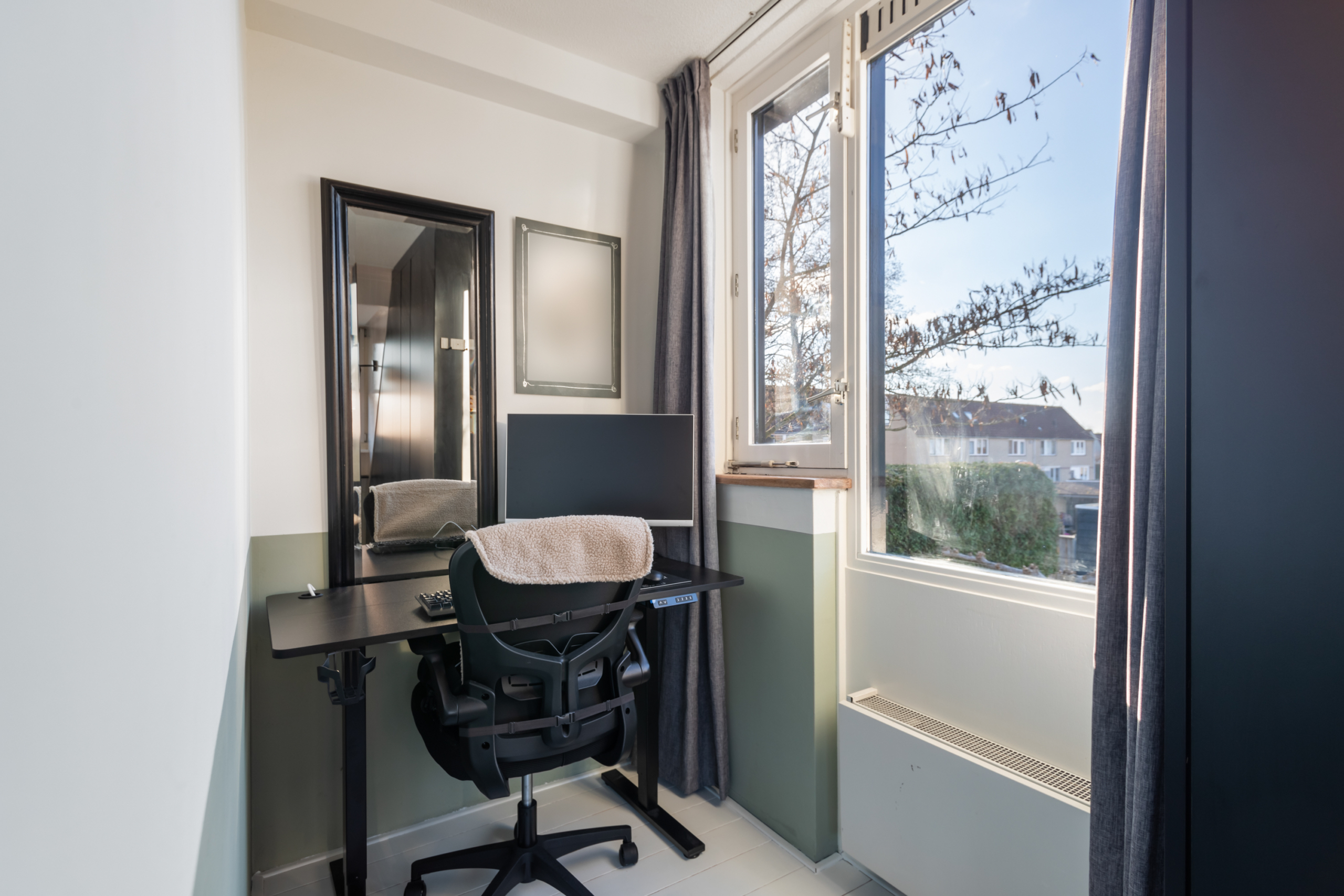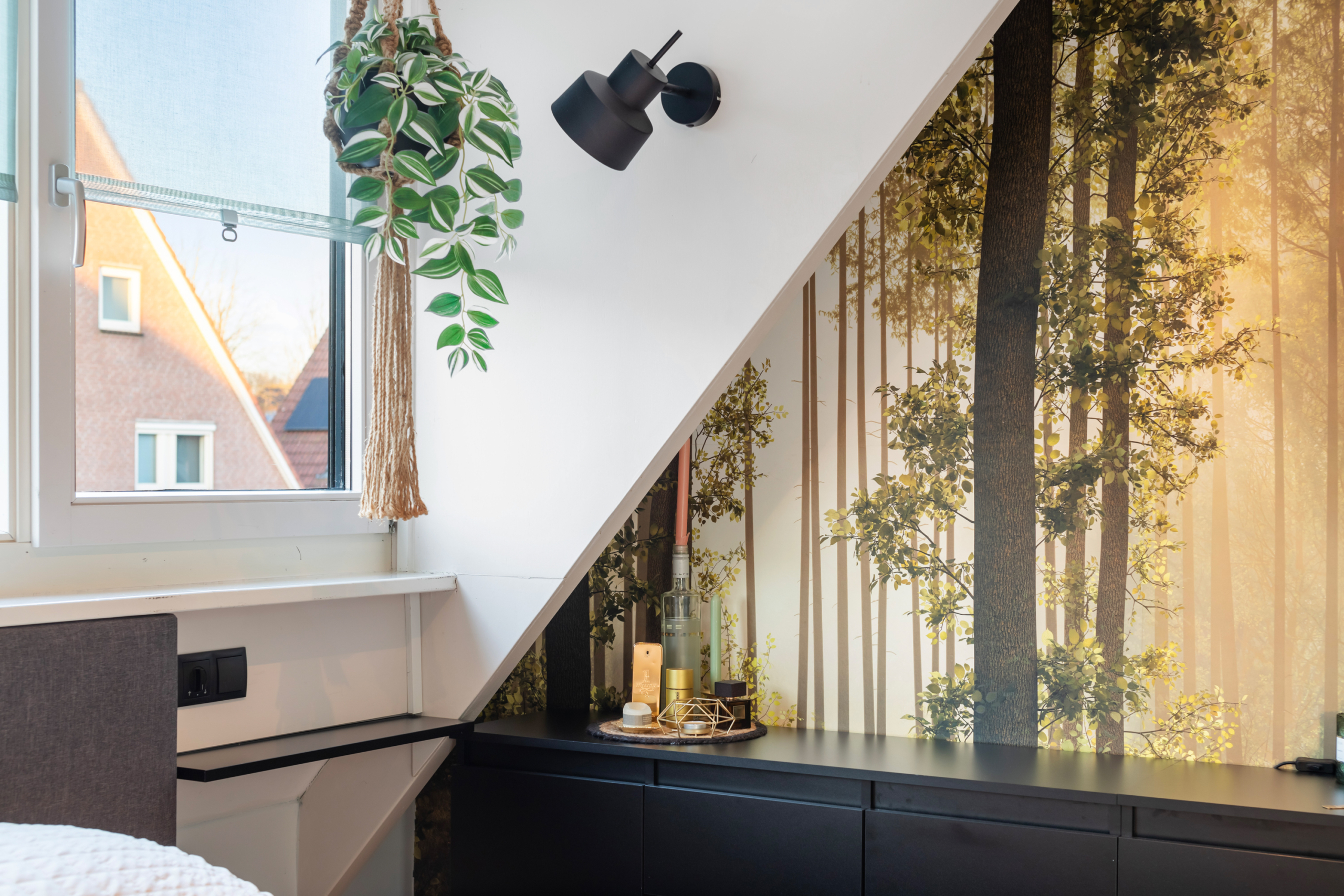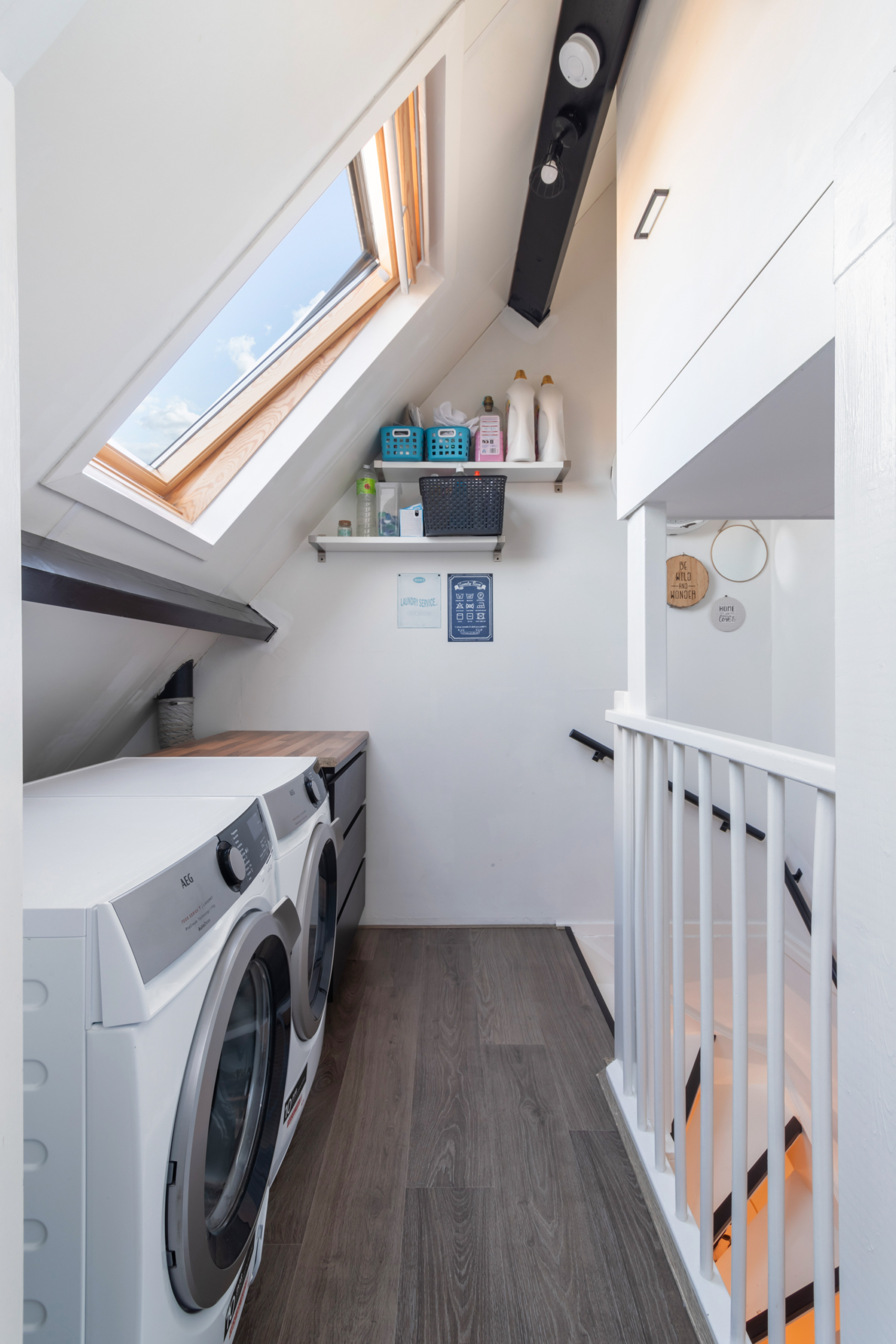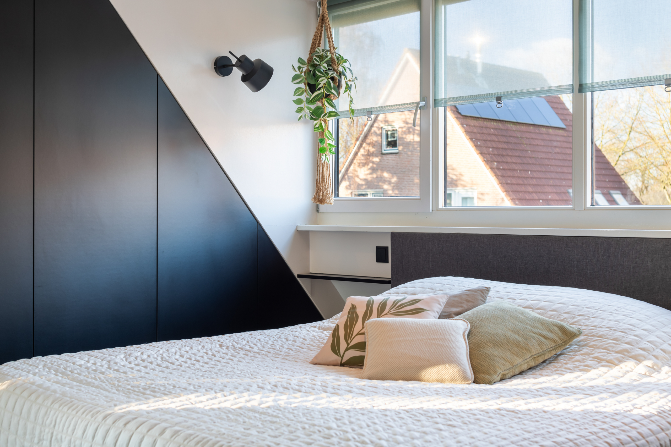 Tweede verdieping – overloop met groot buffervat voor de opvang van warmwater en de wasmachine en -droger aansluiting alsmede de MV-unit. Daarnaast toegang tot de derde slaapkamer voorzien van dakraam. Door middel van een extra wandje is er een knusse slaaphoek gecreëerd. Van hieruit ook toegang tot de technische bergkast met daarin de CV-ketel.