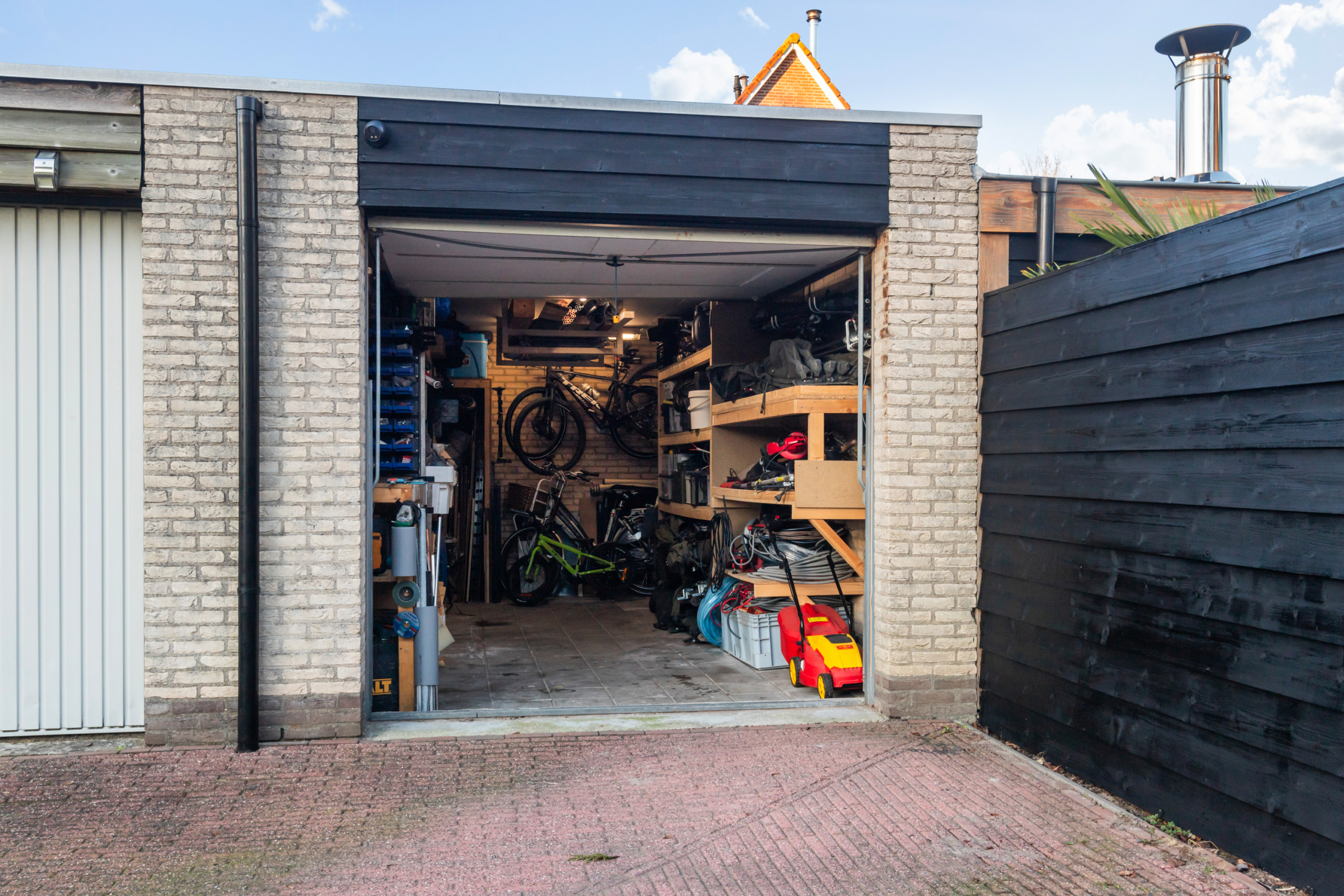 De tuin is keurig aangelegd met palmbomen, gras, terrassen en een luxe afgewerkte veranda met daarnaast een houtgestookte hottub. Mediterrane sferen voor vele uren genieten gegarandeerd! Vanuit de veranda heb je toegang tot de vrijstaande garage die ook voorzien is van een kanteldeur waardoor je meteen makkelijk met je fiets de garage uit kan rijden en direct op het hofje uitkomt. Op de garage en veranda bevinden zich de 15 zonnepanelen.