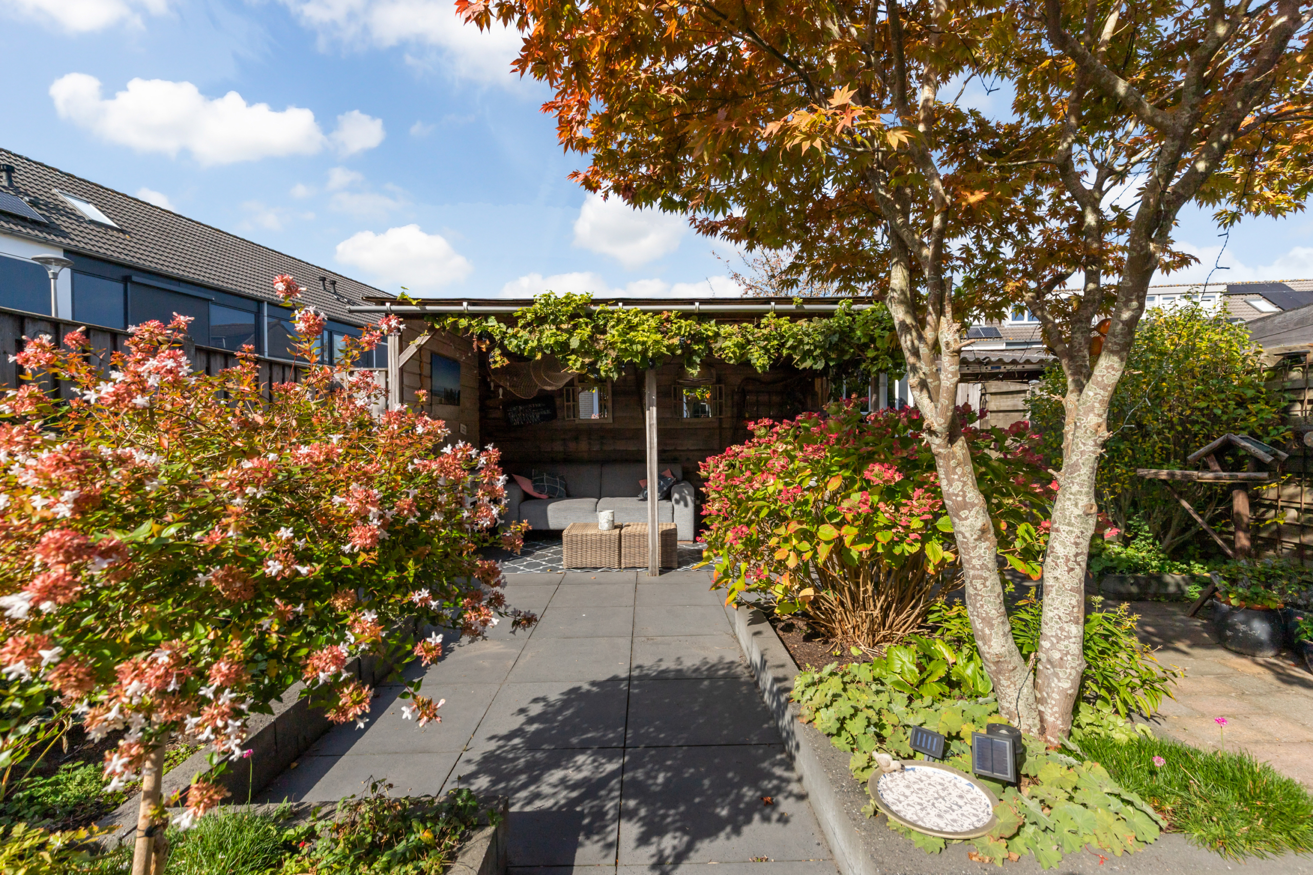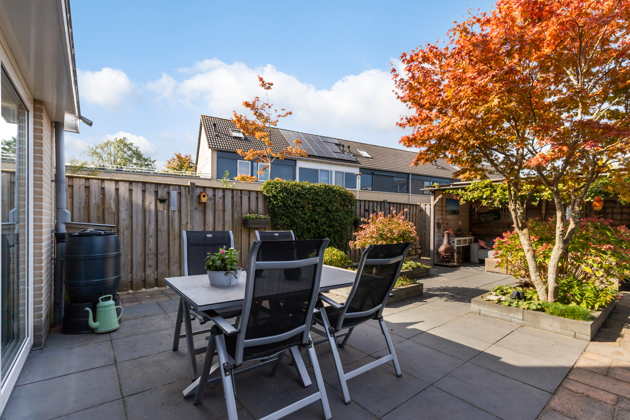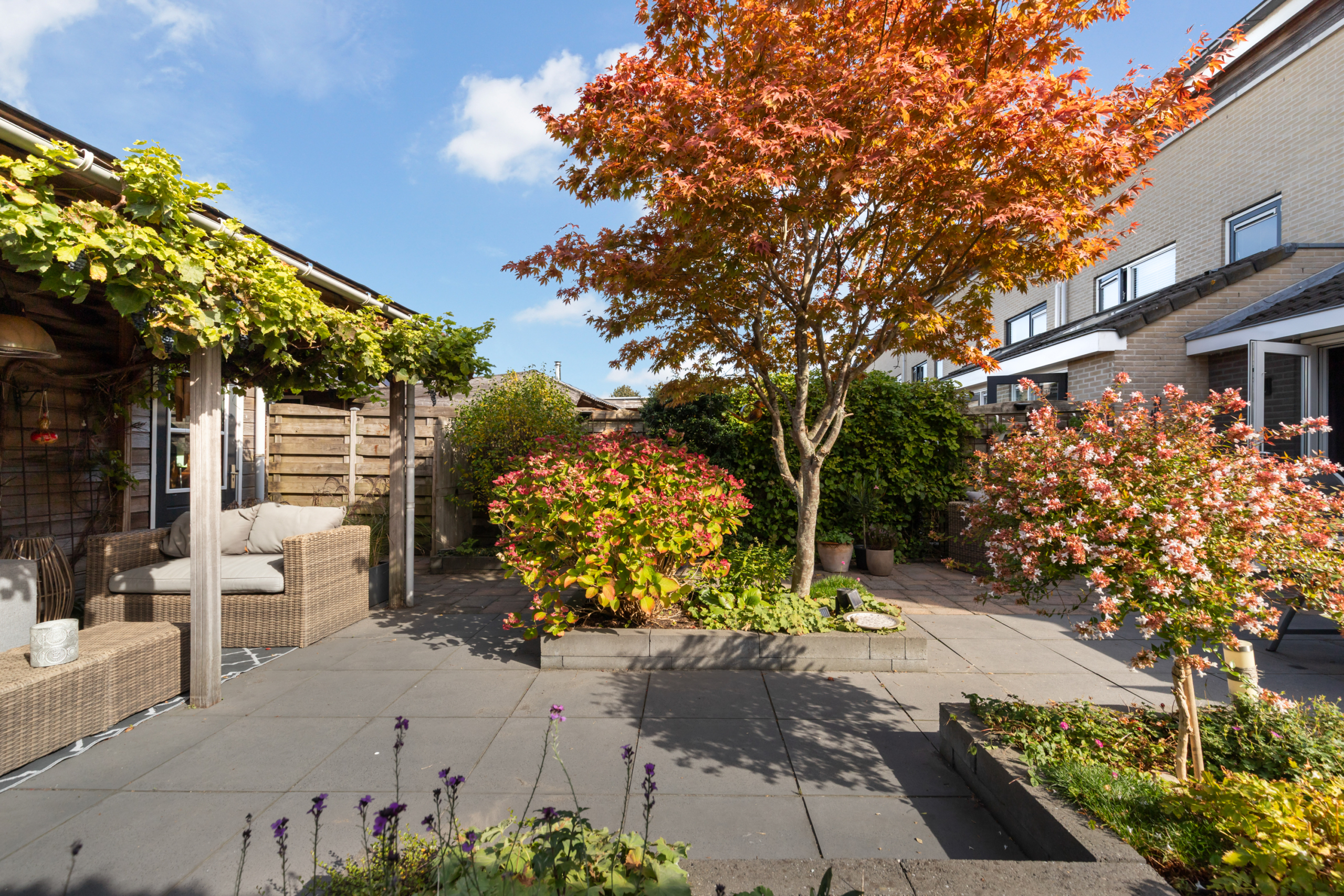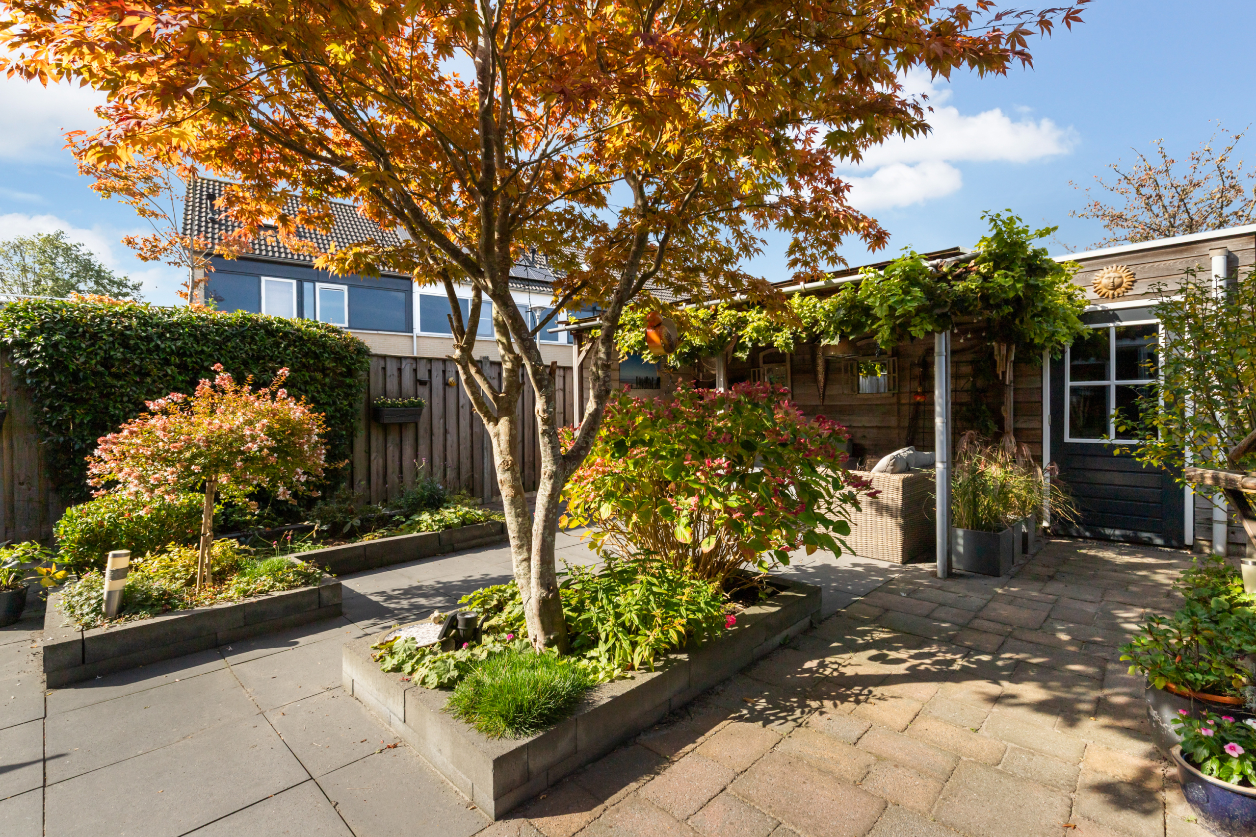 Via de schuifpui of de aparte loopdeur, stap je zo de fraai aangelegde en goed onderhouden tuin in. Met haar open ligging aan de zijkant, heb je de hele dag zon in de achtertuin. Achter in de tuin staat de ruime garage met daarvoor de houten veranda.