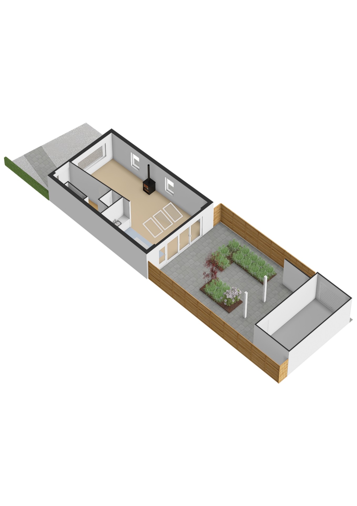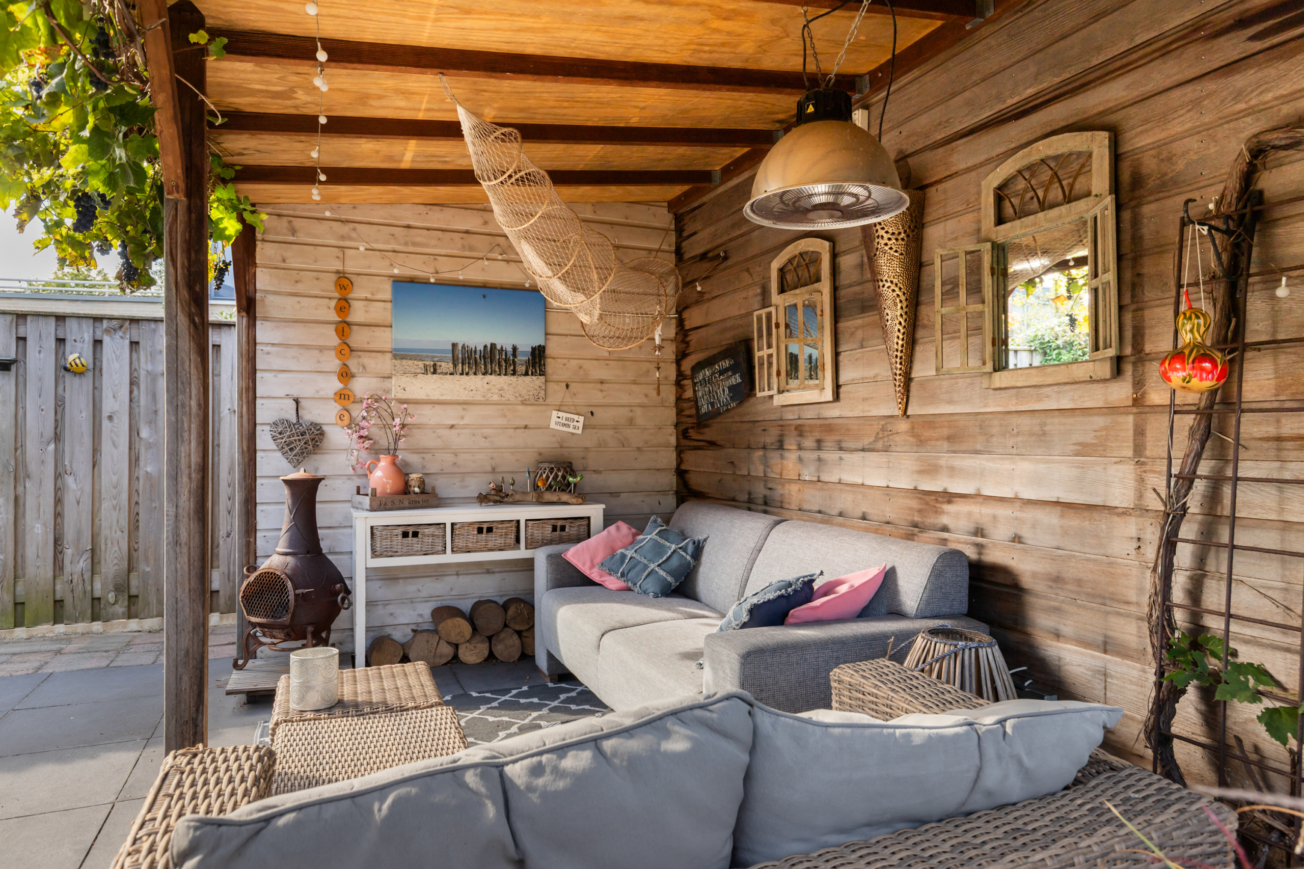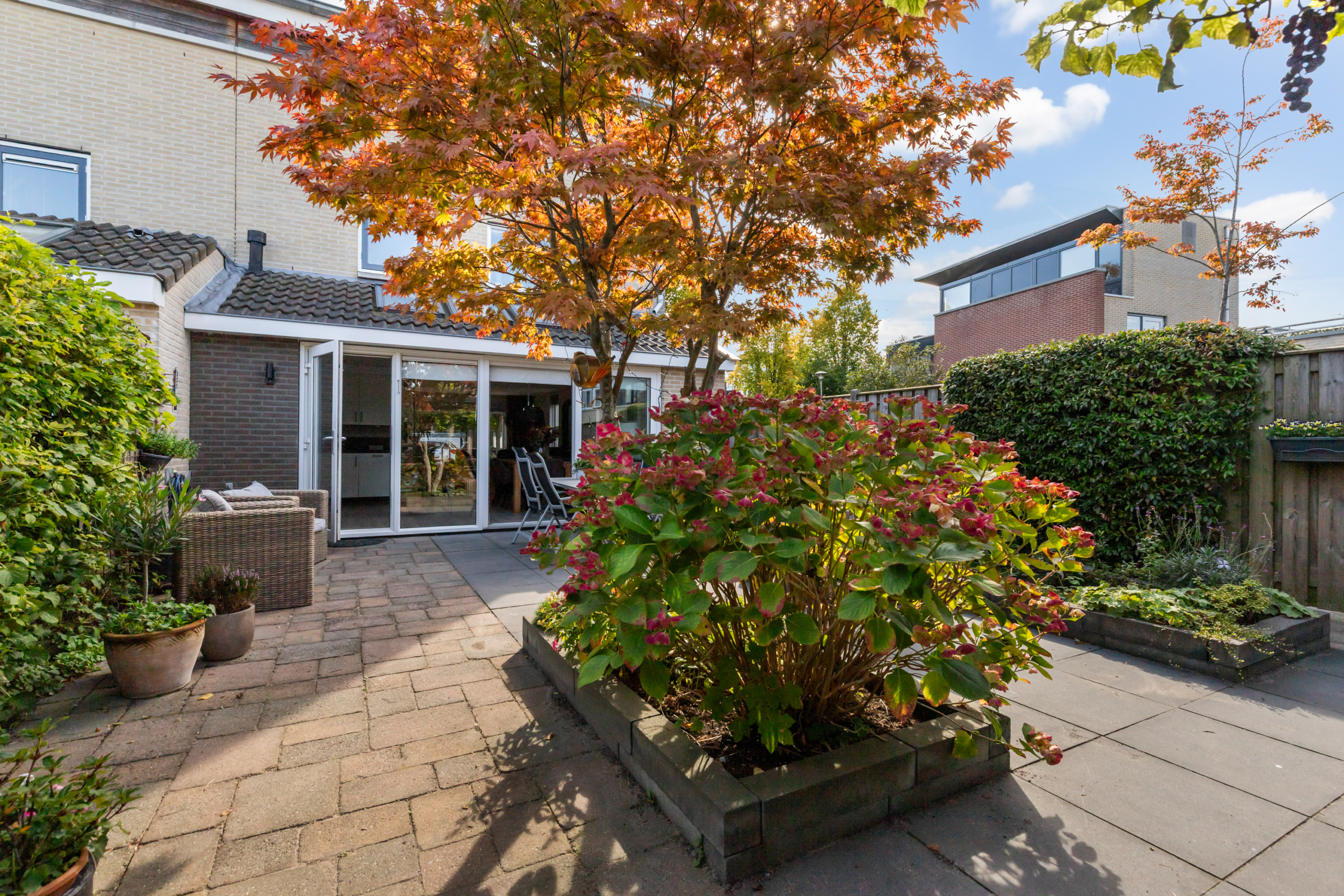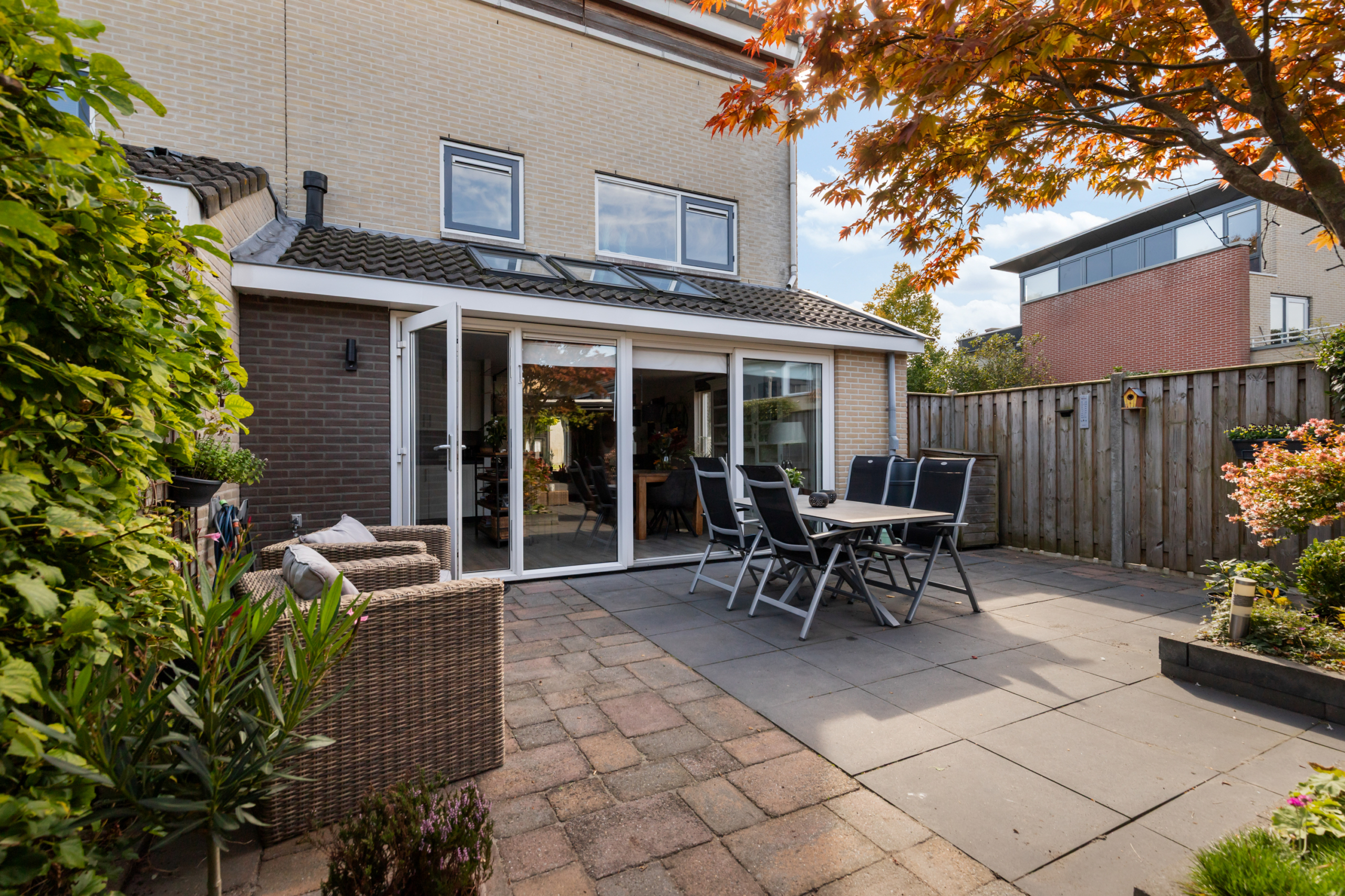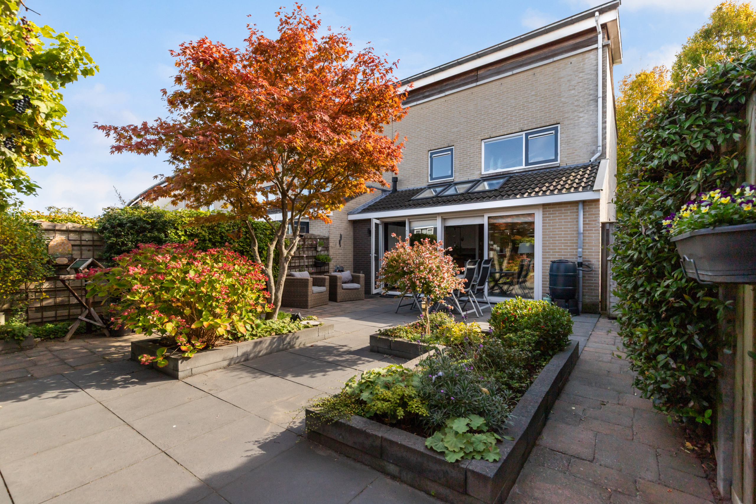 Via de schuifpui of de aparte loopdeur, stap je zo de fraai aangelegde en goed onderhouden tuin in. Met haar open ligging aan de zijkant, heb je de hele dag zon in de achtertuin. Achter in de tuin staat de ruime garage met daarvoor de houten veranda.