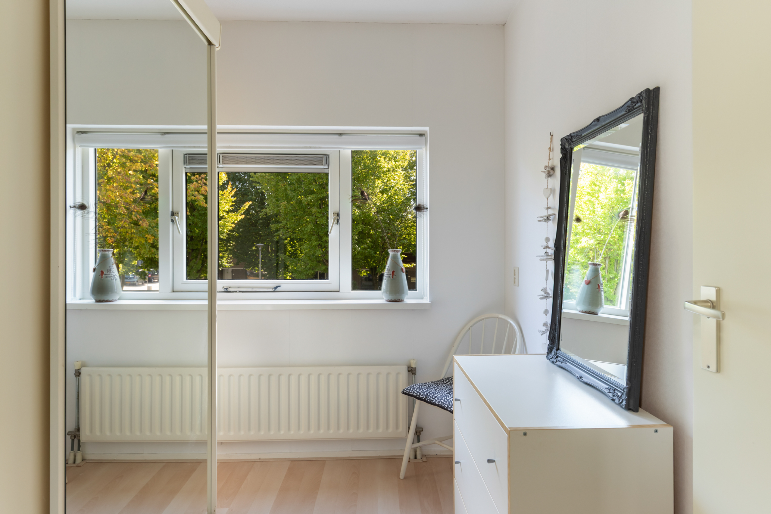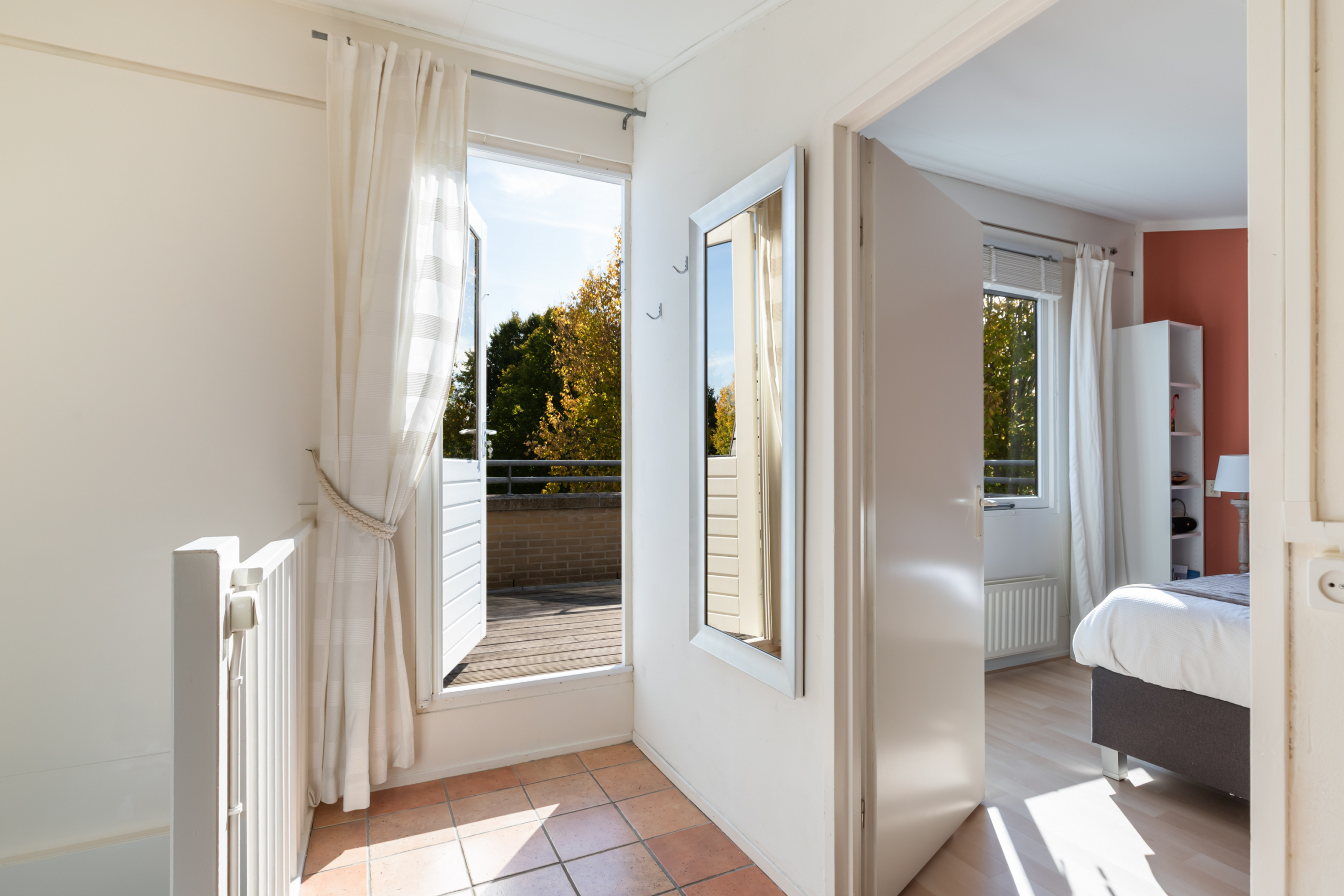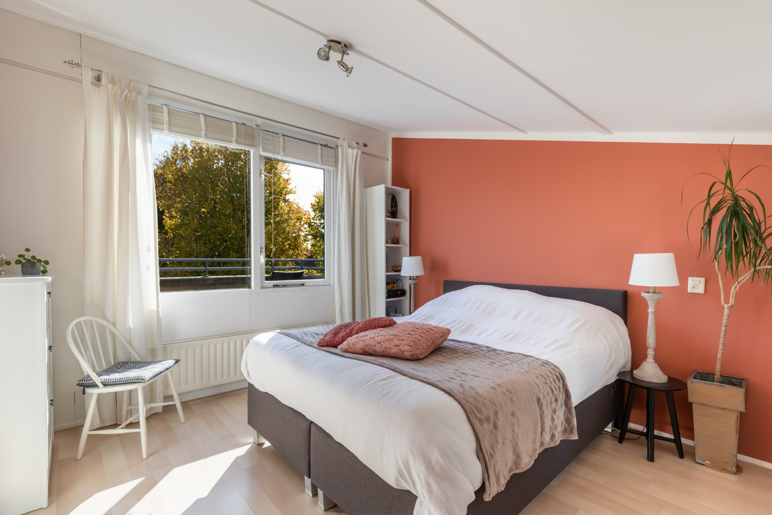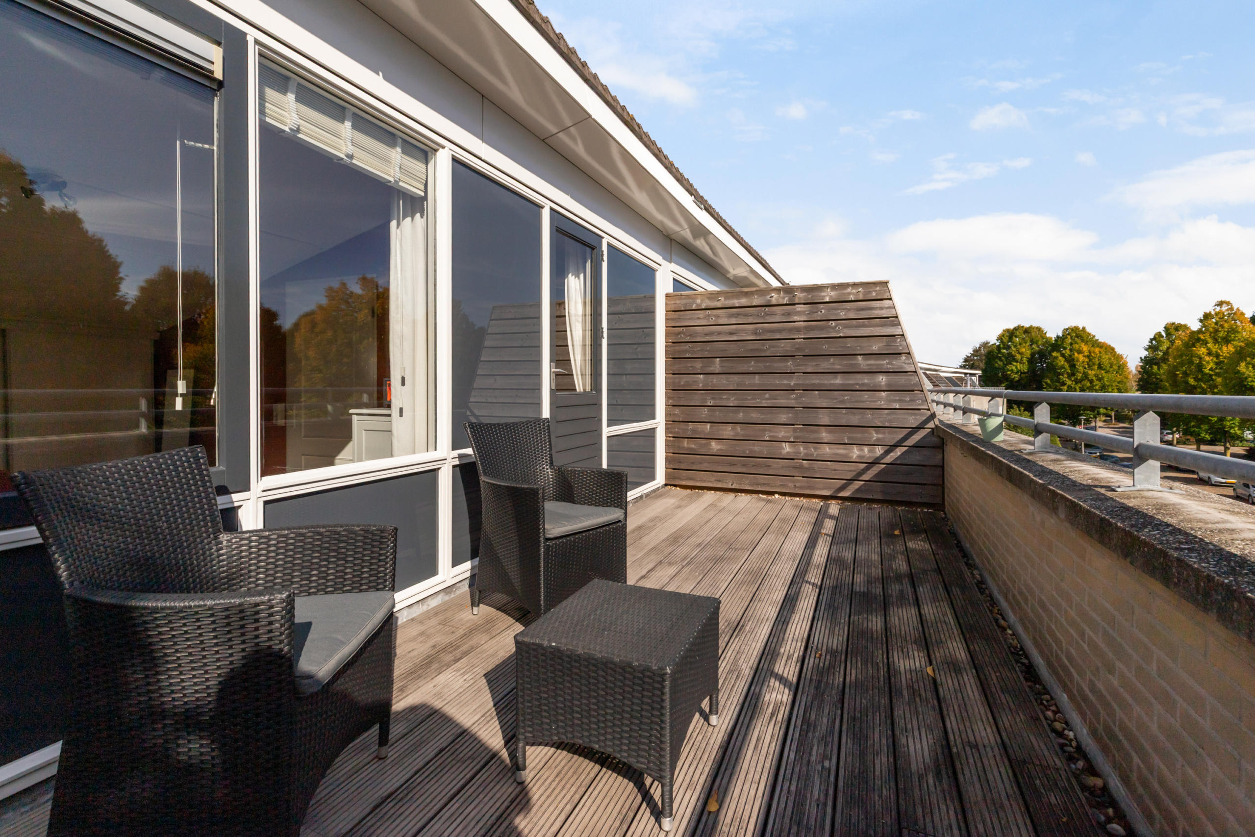 Hier is ook de deur naar het ruime dakterras op het zuiden, handig om niet door de slaapkamer te hoeven gaan.