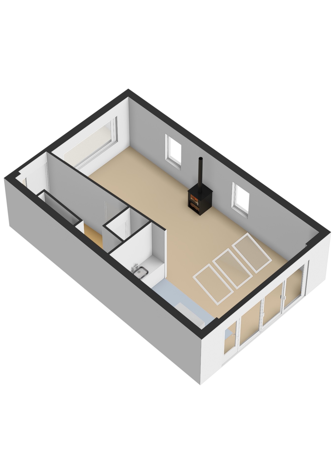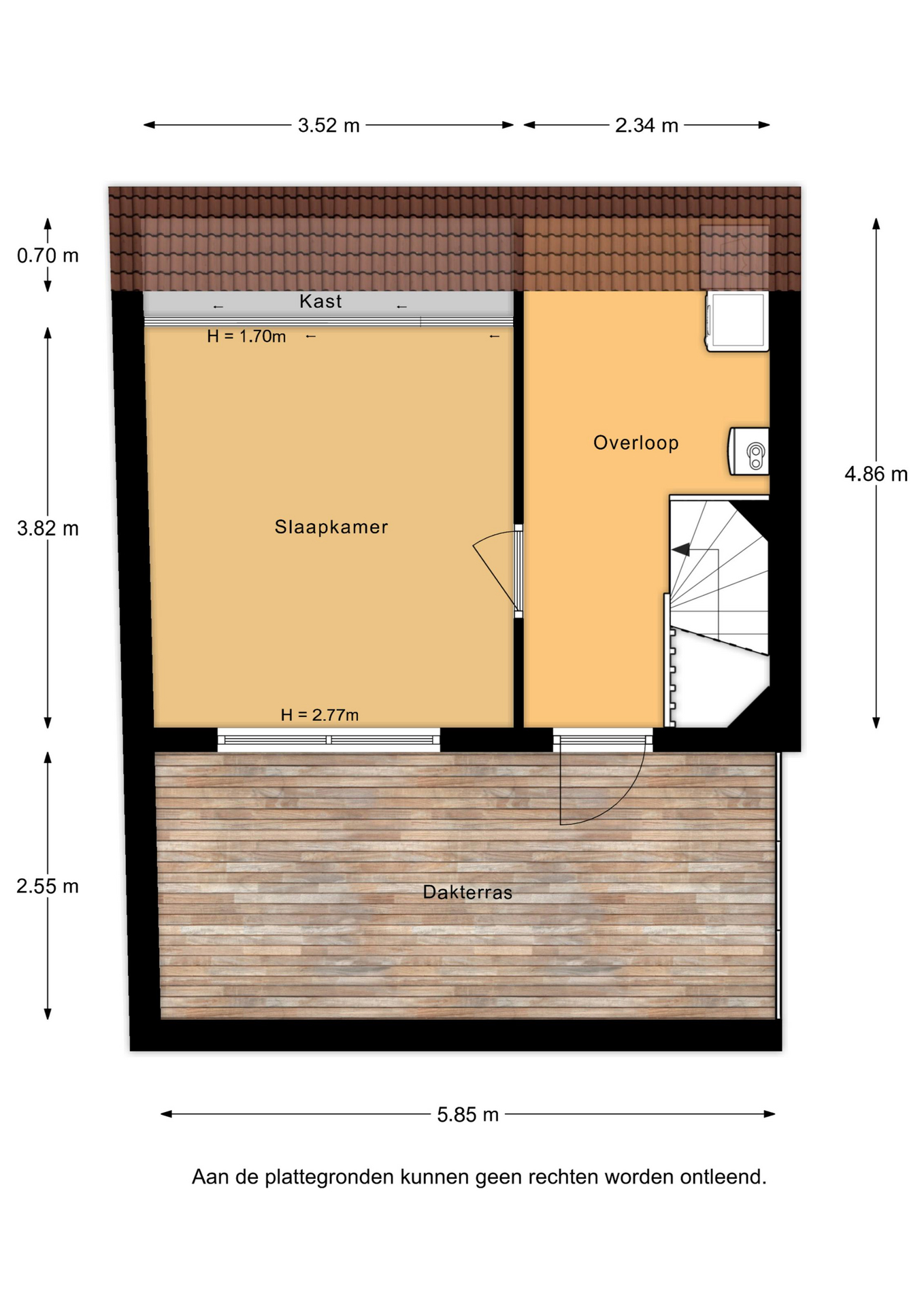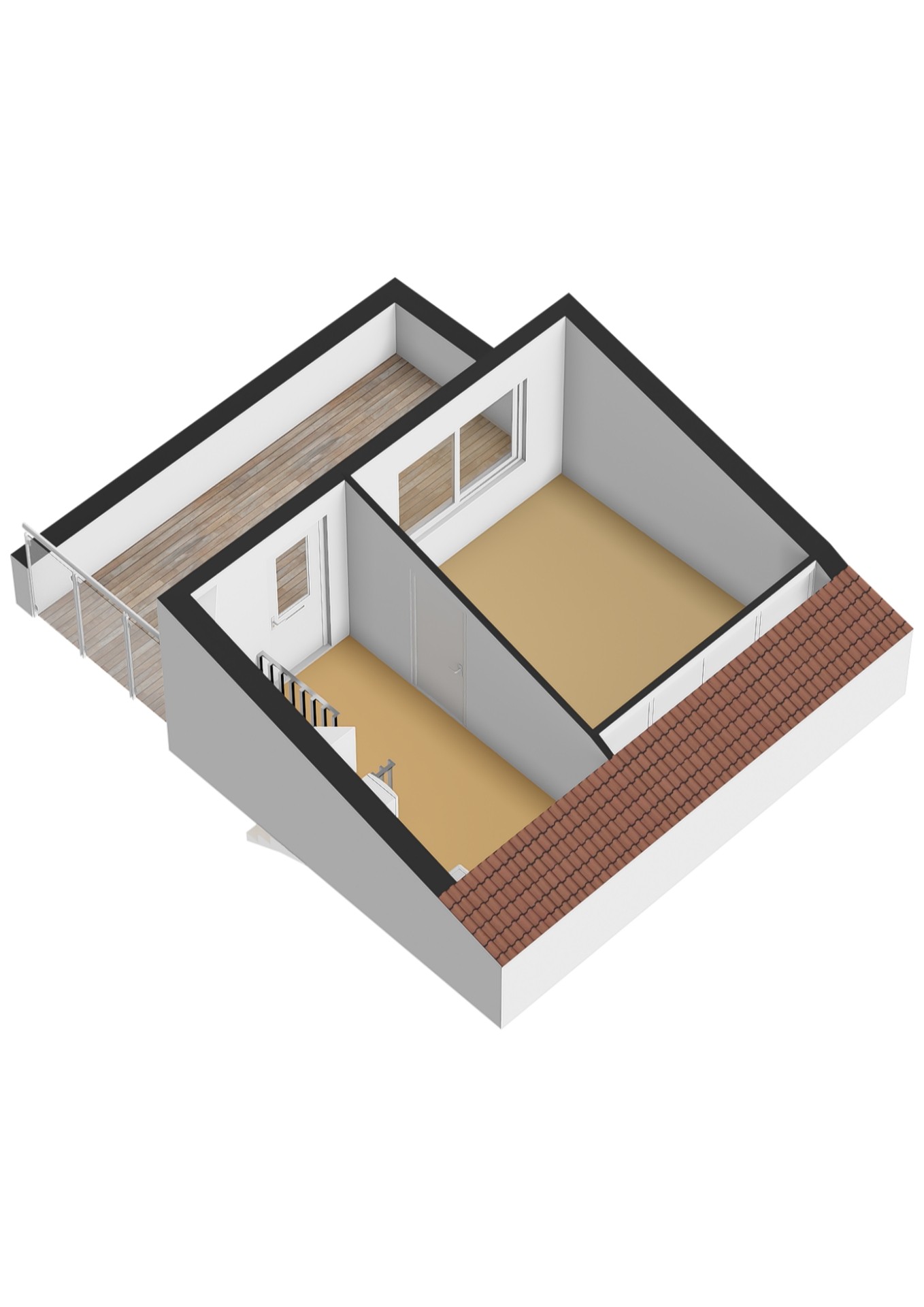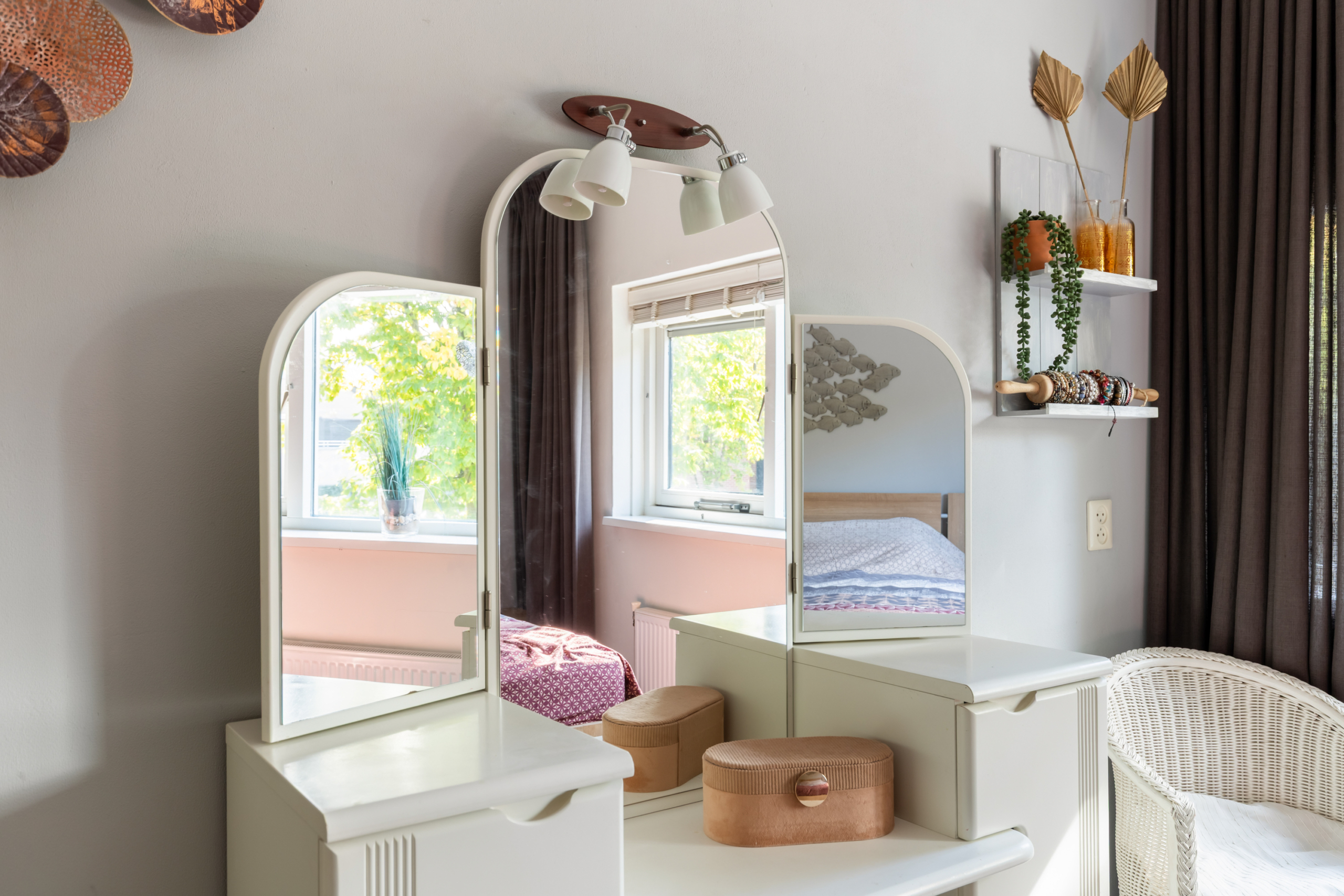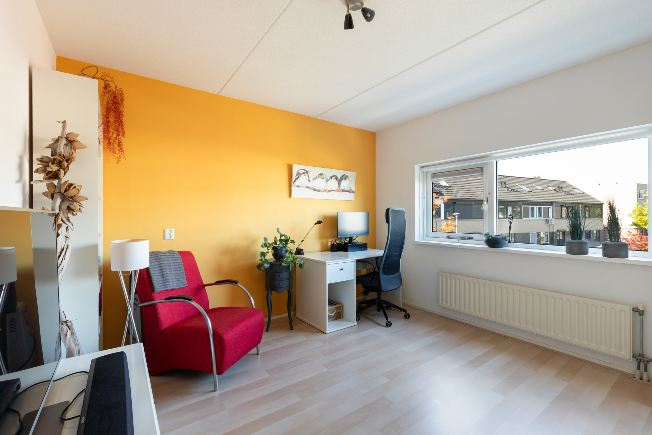 Hier is ook de deur naar het ruime dakterras op het zuiden, handig om niet door de slaapkamer te hoeven gaan.